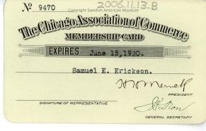 Membership card from the Chicago Assoiation of Commerce June 12, 1919.Acquisition