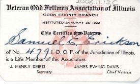 Membership card from Veteran Odd Fellows Association of Illinois, 1922.Acquisition
