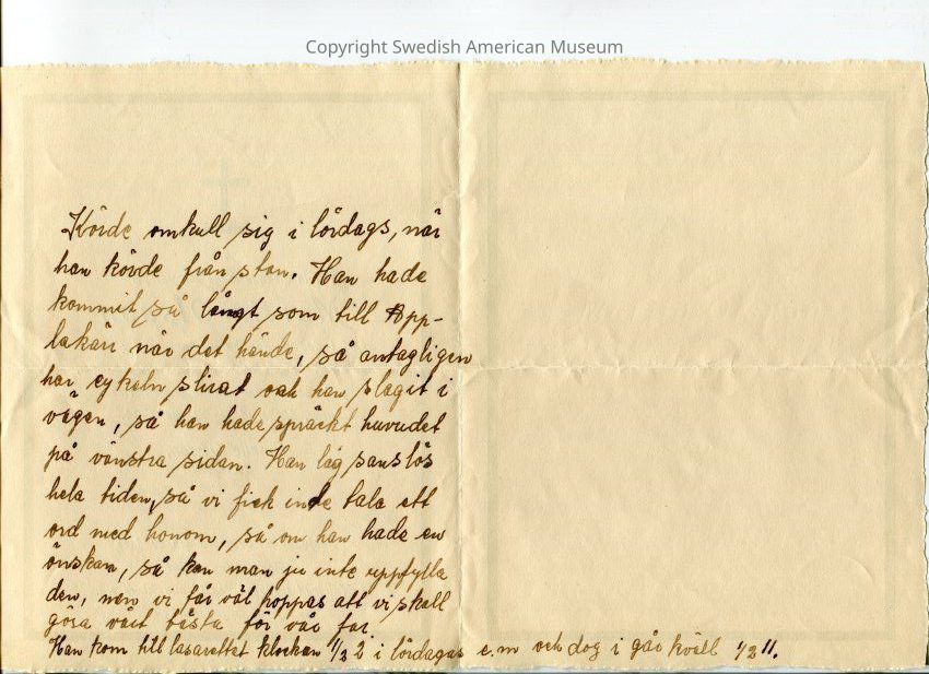 This folder contains archival material related to funerals and grave sites of the Swanson Family. Dated 1934-1945 and Undated.Title