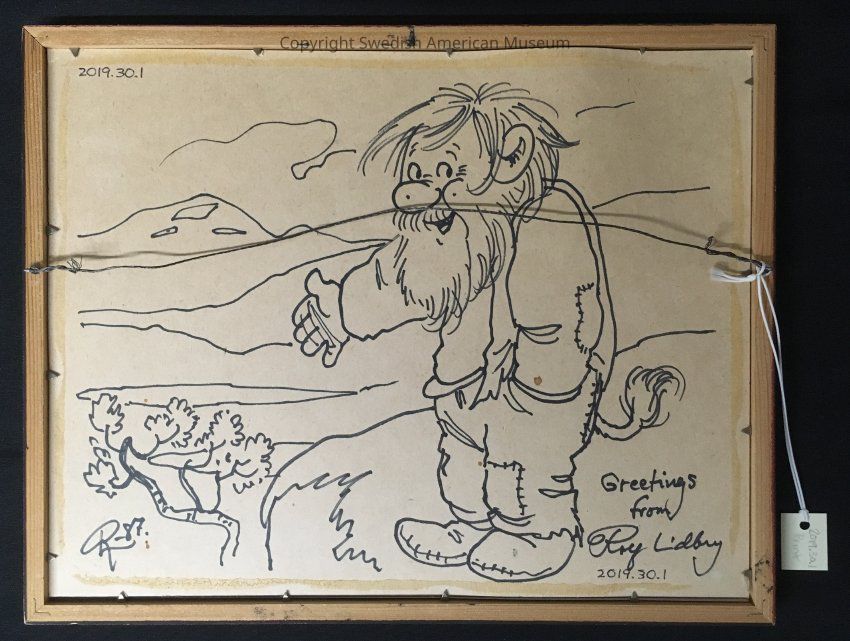 Rolf Lidberg was born in 1930 in Liden, Sweden. Lidberg was an artist and botanist, best known for his illustrations, lithographs, watercolor paintings, and children’s books. In his illustrations and paintings, he creates trolls that were very humanlike pictured in nature. His books consisted of similar Illustrations of trolls and had been translated to 12 different languages and enjoyed by children around the world. Folk tales of trolls heavily influenced the work of Lidberg.Acquisition