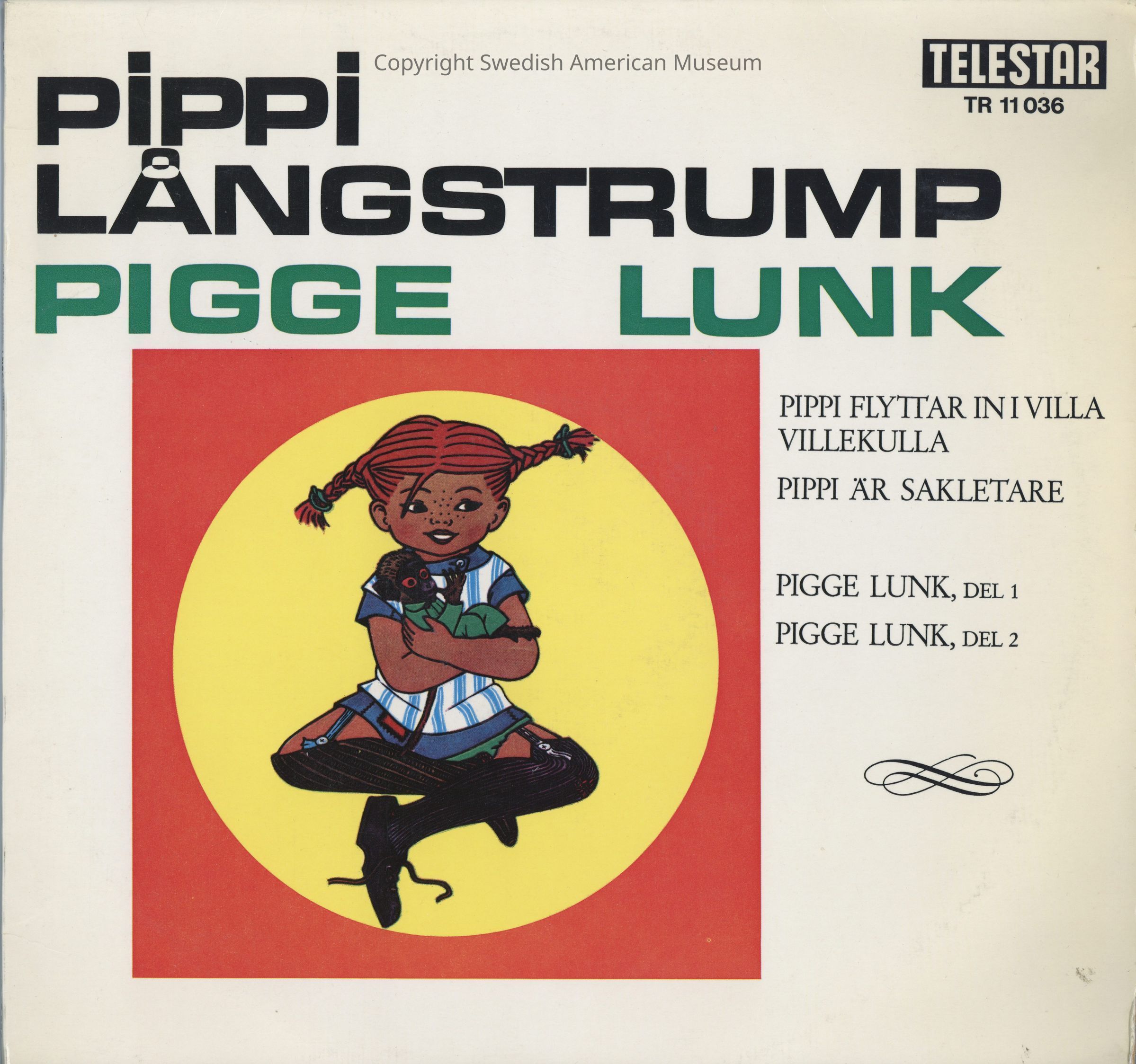 33 rpm vinyl music record by Pippi Långstrump produced by Telestar in c.1970s