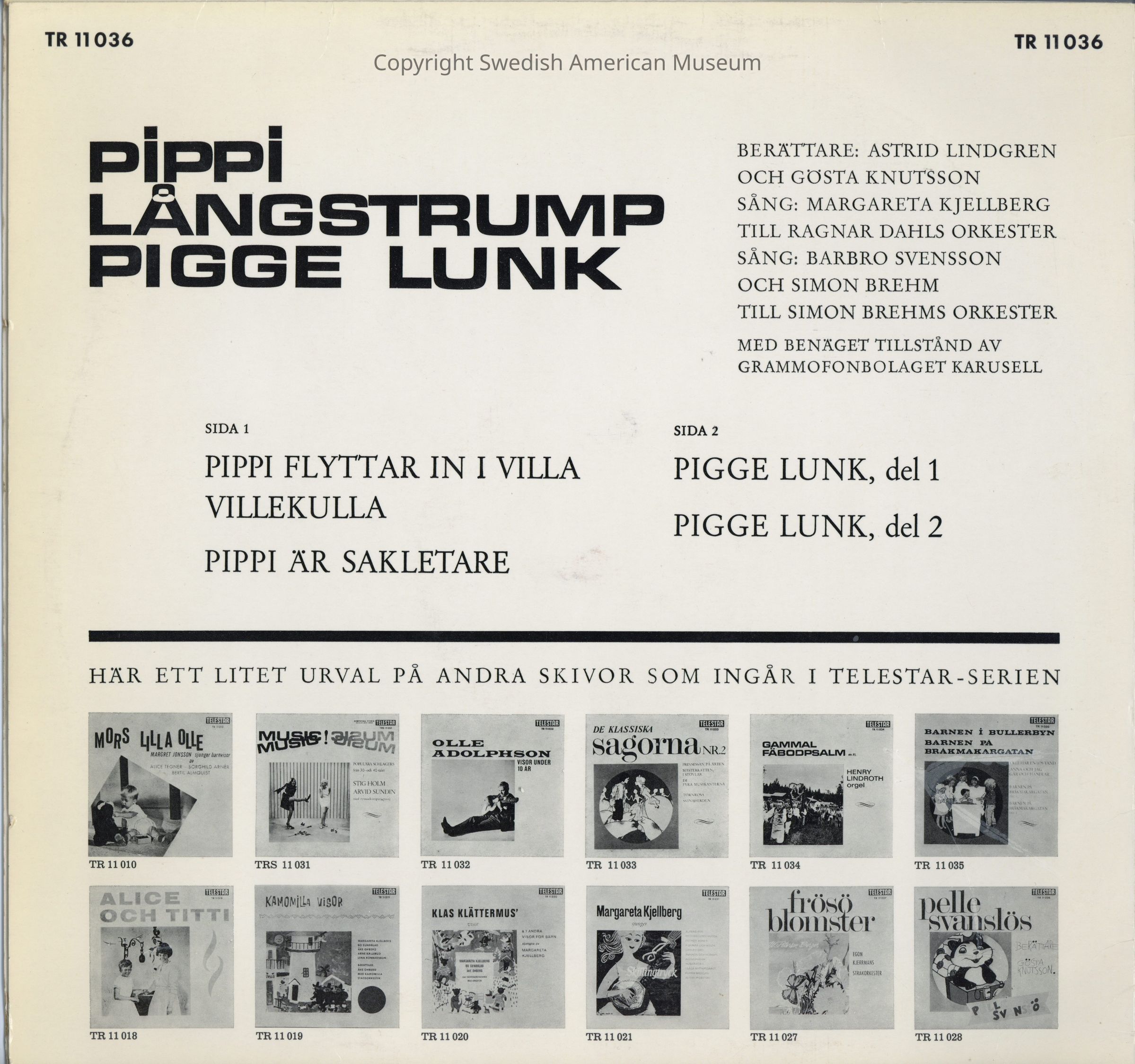 Certain works may be protected by copyright not governed by the Swedish American Museum.