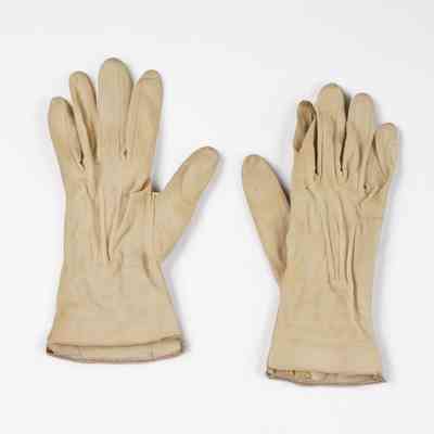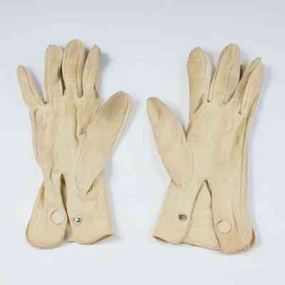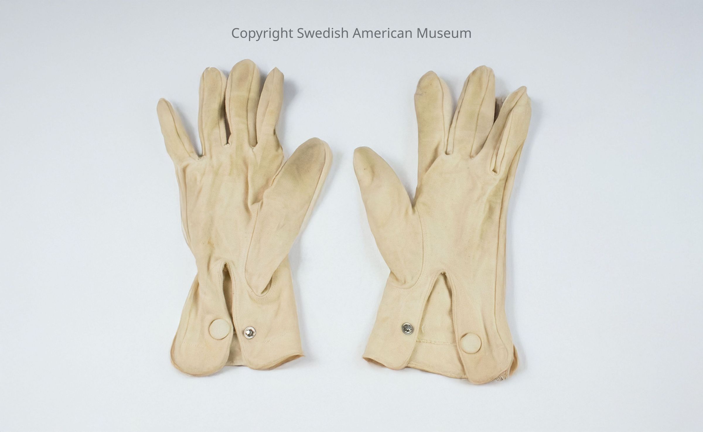 These gloves (2022.5.3.A, .B) are part of a uniform worn by Norman D. Johnson when he served in the US Navy during WWII.