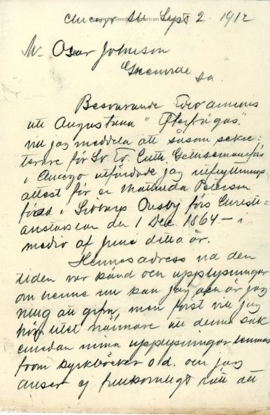 Document from Lebanon Swedish Evangelical Church, Sept 2, 1912.Context