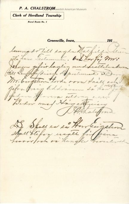 Letter from P.A. Charlstrom.Context