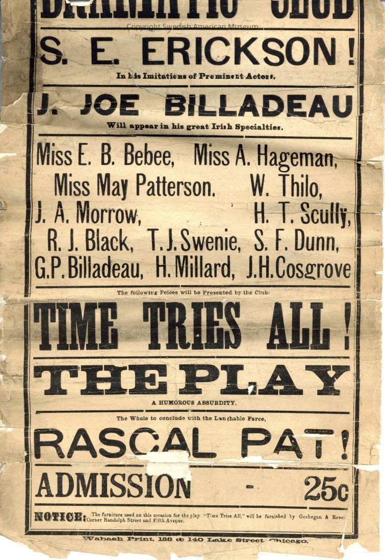 Bijou Opera House Criterion Dramatic Club Flyer where Sam Erickson is starring.