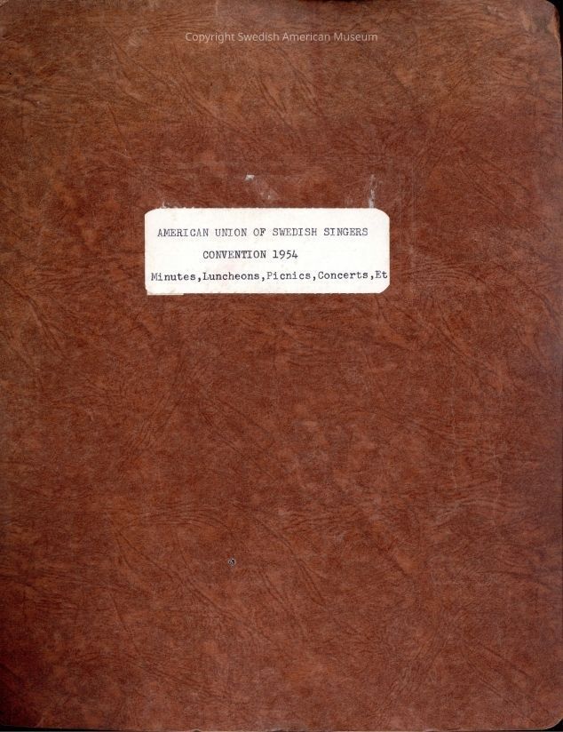 Notebook labeled "American Union of Swedish Singers Convention 1954 Minutes, Luncheons, Picnics, Concerts, etc." Notebook contains meeting minutes, address lists, correspondence and invitations, reports, etc.Acquisition