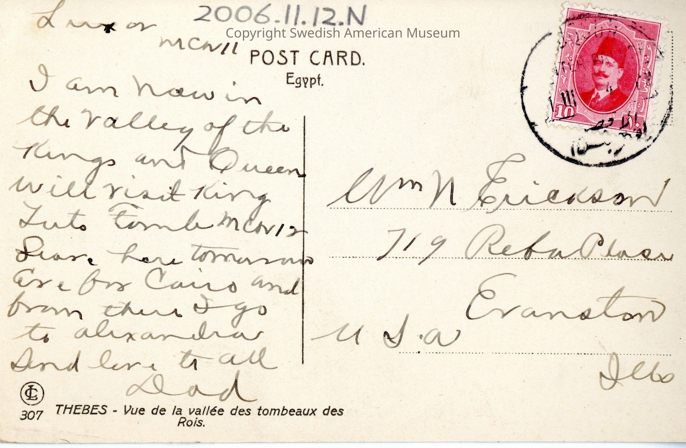 Postcard of Thebes, Egypt addressed to William Erikson.
