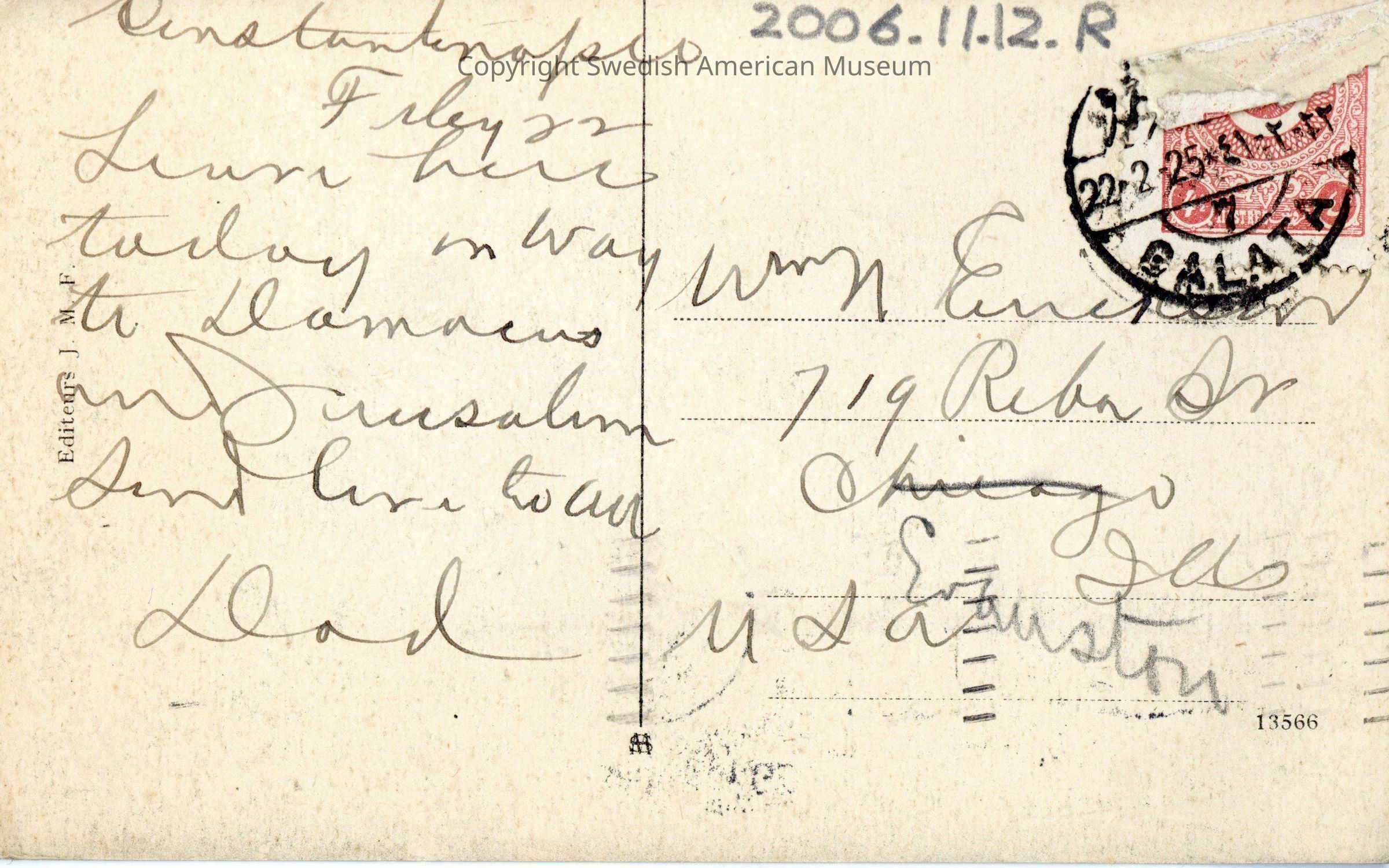 Postcard of Istanbul addressed to William Erikson.