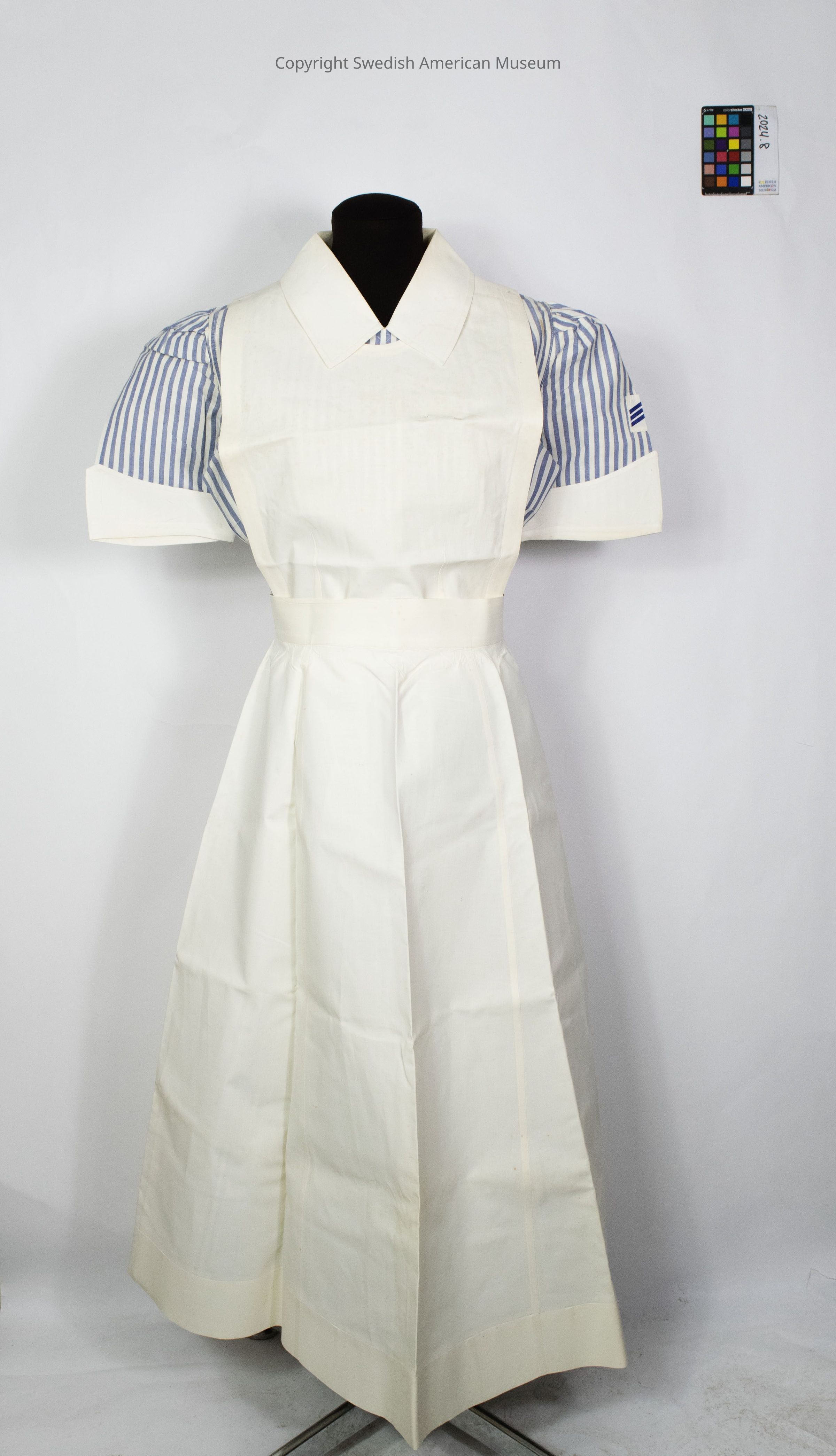 Worn by Virginia Olson Anderson, the donor's mother, who graduated from nursing school in 1953 and worked at the Swedish Covenant Hospital.Context