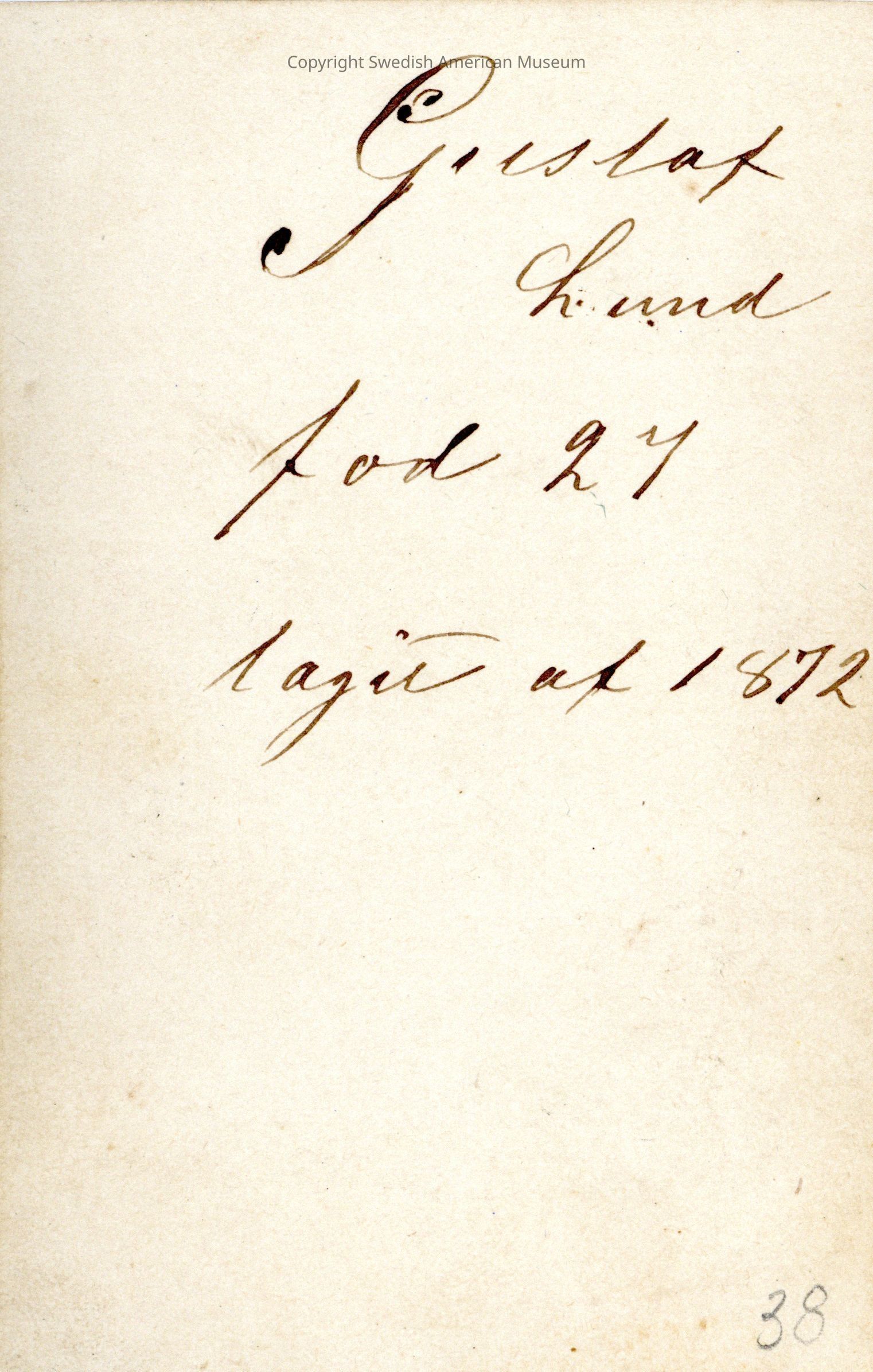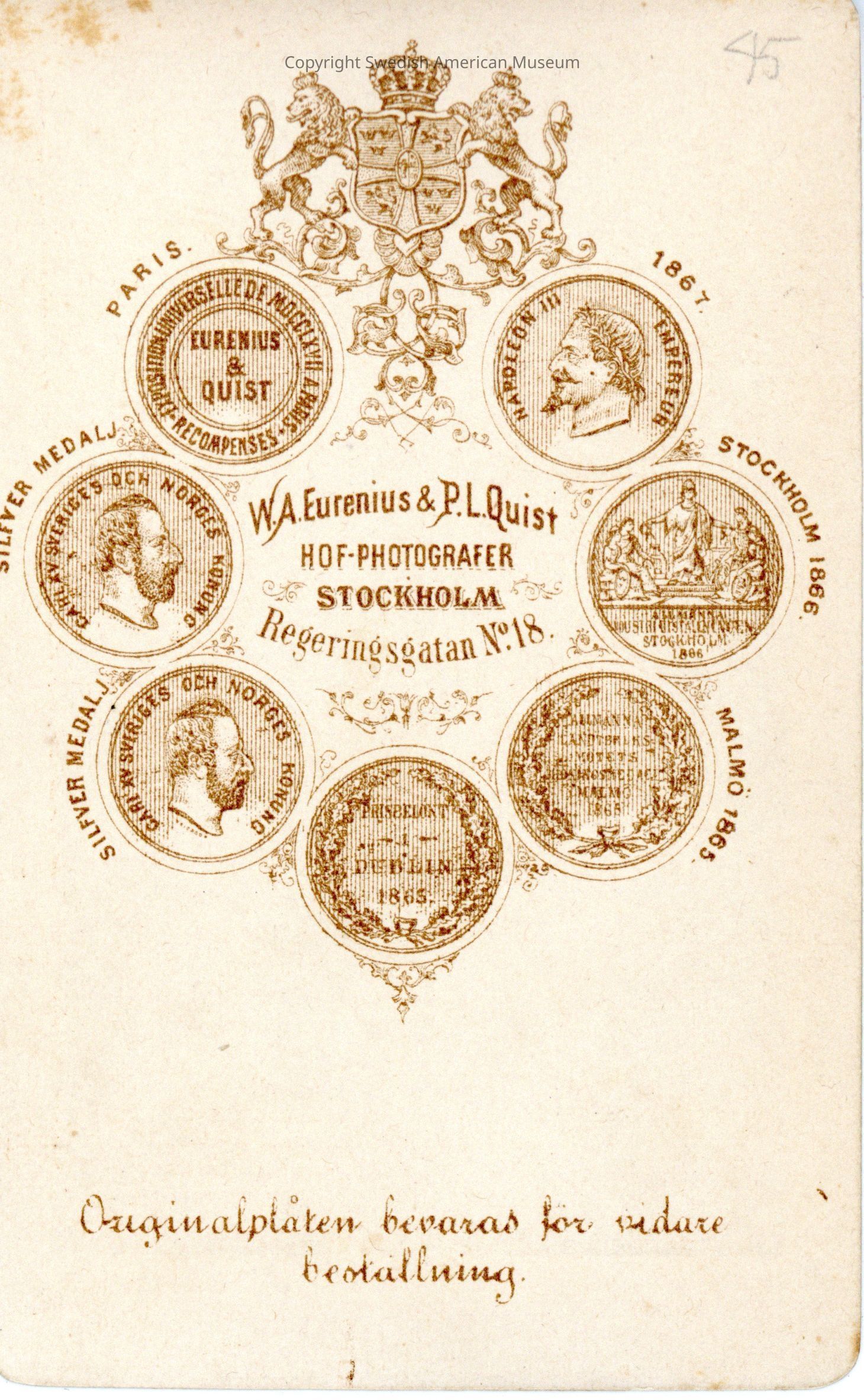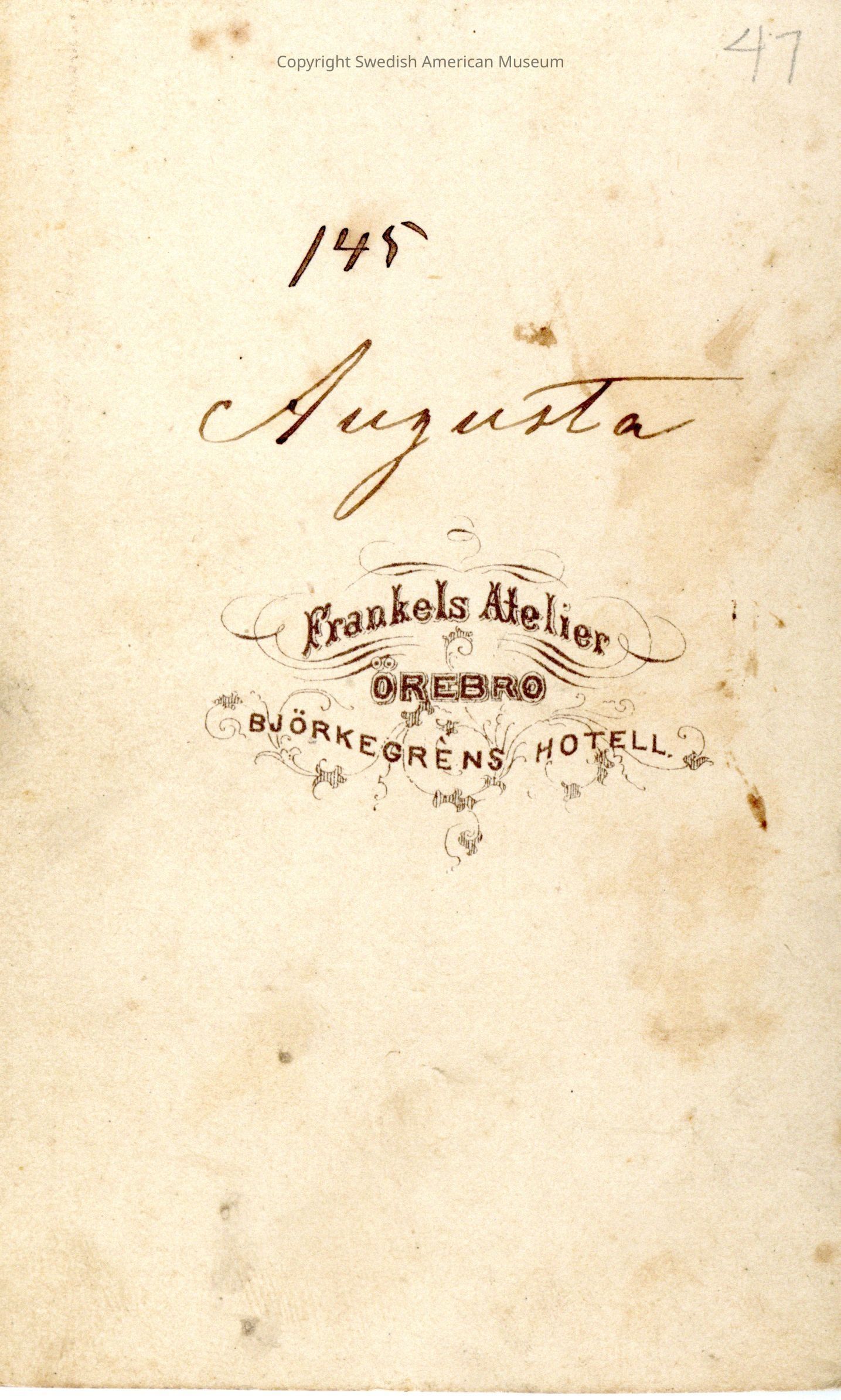 The donors great-great grandmother Edla Olson Walters brought the photo album with her when she immigrated from Sweden to The United States in 1883.Acquisition