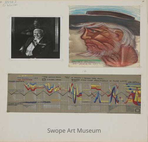 A Unit Set Design For a Mobile Stage -Front View for THE WHITE WHALE Back: photo Lauritz Melchior , drawing Walter Huston as Ahab, a visual schemata of the Music as it might look registered in Sound Waves (Epic theater symphonic drama in five acts- basedEntry/Object ID