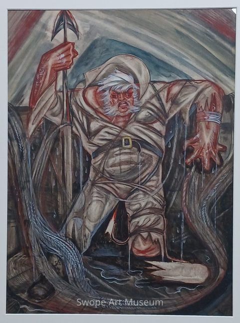 Ahab Unmanned (DRAWINGS FOR the short film " Herman Melville's MOBY DICK " in colaboration with Jerry Winters, 1955) & ? The White Whale Back: diagram of Boat and stage.Entry/Object ID