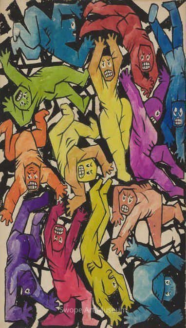 multi colors of Hue Mans all a jumble (Drawings for Old Mr. World and the Hue Mans animated film)