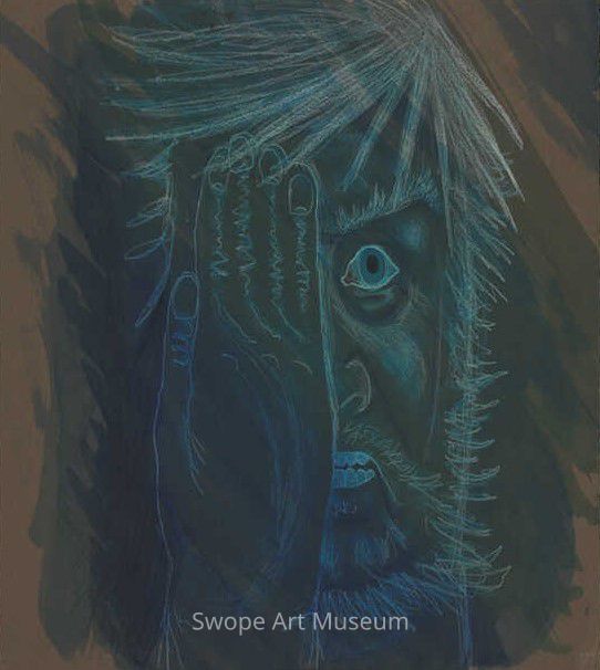 UNTITLED portrait hand covering face (Ahab) (DRAWINGS FOR the short film " Herman Melville's MOBY DICK " in colaboration with Jerry Winters, 1955) back: skullEntry/Object ID