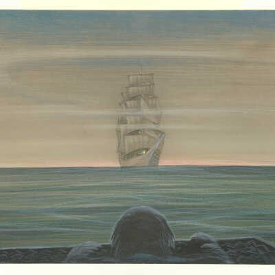 night on deck (?ahab)(DRAWINGS FOR the short film " Herman Melville's MOBY DICK " idirected by Jerry Winters, narrated by Thomas Mitchell, 1955)