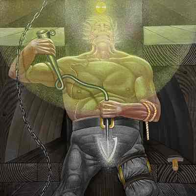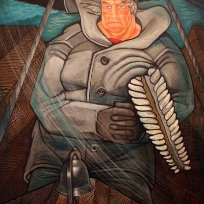 Ahab with harpoon reflection (DRAWINGS FOR the short film " Herman Melville's MOBY DICK " idirected by Jerry Winters, narrated by Thomas Mitchell, 1955)