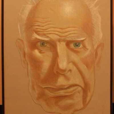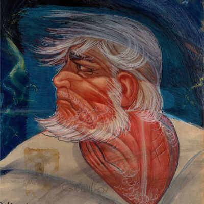 face of Old Mr. World , eyes open (Drawings for Old Mr. World and the Hue Mans animated film)