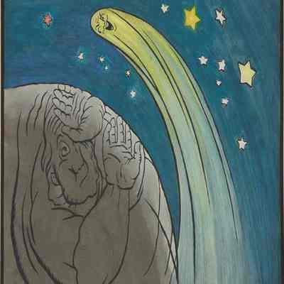 the race continues, Old Mr. World consults Old Miss Moon, 26(from a fable OLD MISTER WORLD AND THE HUE-MANS) (possibly for animated filming "a fable of earth and the atom", or publication)