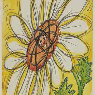 untitled flower w nuclear sign face (Drawings for Old Mr. World and the Hue Mans animated film)