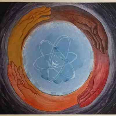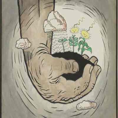 untitled hands circle nuclear sign w smiling face (Drawings for Old Mr. World and the Hue Mans animated film)