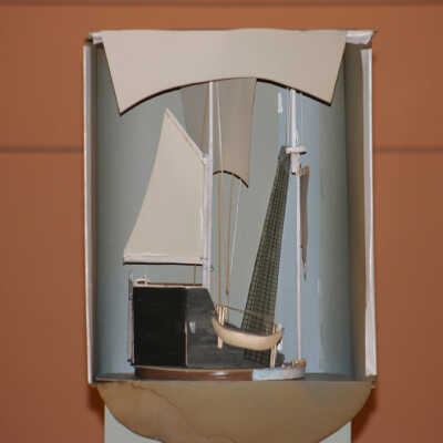 Ahab Unmanned (DRAWINGS FOR the short film " Herman Melville's MOBY DICK " in colaboration with Jerry Winters, 1955) & ? The White Whale Back: diagram of Boat and stage.