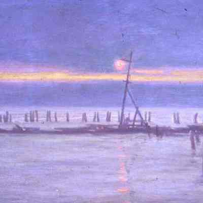 sideview ship ?at dock (DRAWINGS FOR the short film " Herman Melville's MOBY DICK " in colaboration with Jerry Winters, 1955)