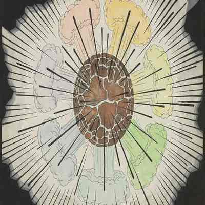 untitled nuclear sign with floating clump of orbs (Drawings for Old Mr. World and the Hue Mans animated film)