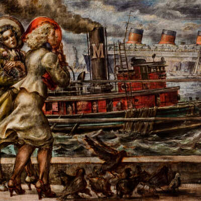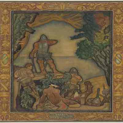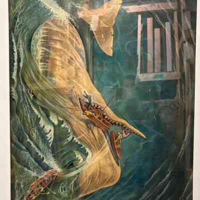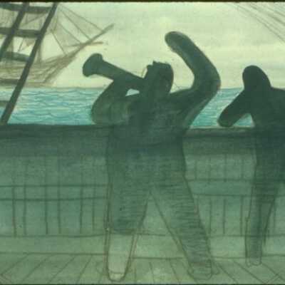 crew hearald a ship(DRAWINGS FOR the short film " Herman Melville's MOBY DICK " idirected by Jerry Winters, narrated by Thomas Mitchell, 1955)