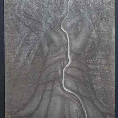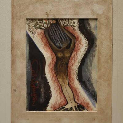 untitled tree trunk rising from ground (Drawings for Old Mr. World and the Hue Mans animated film)