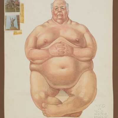 face of Old Mr. World , fat cheeks (Drawings for Old Mr. World and the Hue Mans animated film)