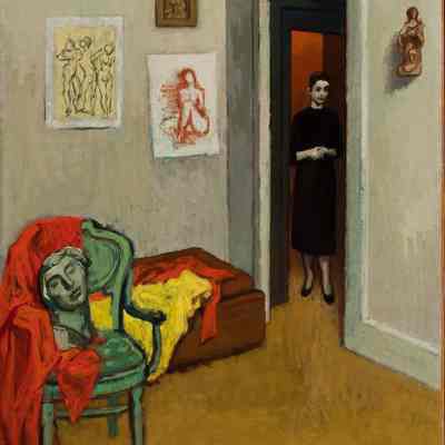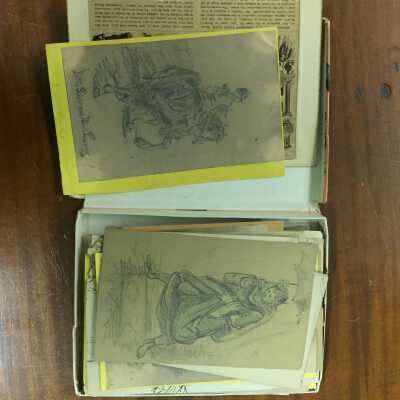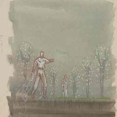 (epilogue for The white whale) Giant Widow w small figure of Ishmael ( & or DRAWINGS FOR the short film " Herman Melville's MOBY DICK " in colaboration with Jerry Winters, 1955) back Stage set drawings