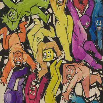 multi colors of Hue Mans all a jumble (Drawings for Old Mr. World and the Hue Mans animated film)