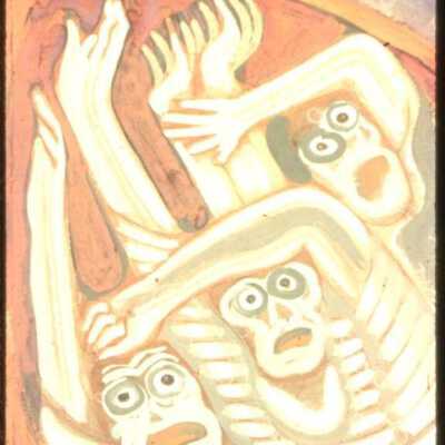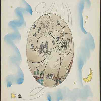 face to face with the question of destruction, 22(from a fable OLD MISTER WORLD AND THE HUE-MANS) (possibly for animated filming "a fable of earth and the atom", or publication)
