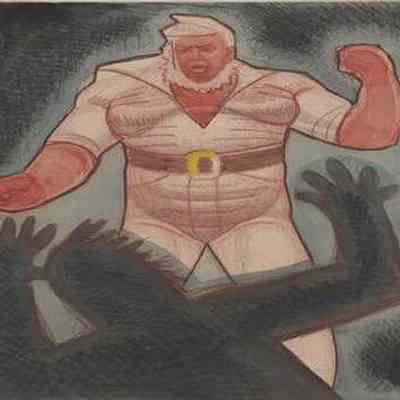 Ahab clenched fists(DRAWINGS FOR the short film " Herman Melville's MOBY DICK " idirected by Jerry Winters, narrated by Thomas Mitchell,1955)