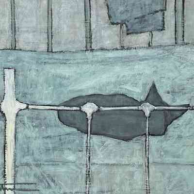 Broken Oars (DRAWINGS FOR the short film " Herman Melville's MOBY DICK " in colaboration with Jerry Winters, 1955) (reverse set schemata (white whale?): stage set -whale razing boat through Hydralic lift)