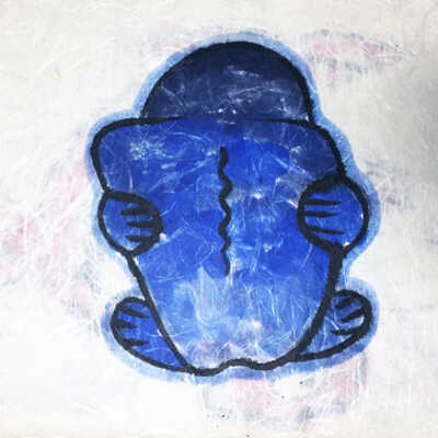 Blue Hue Man with bomb in back pocket (Drawings for Old Mr. World and the Hue Mans animated film)