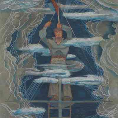 Ahab towereing, holding harpoon (DRAWINGS FOR the short film " Herman Melville's MOBY DICK " in colaboration with Jerry Winters, 1955)