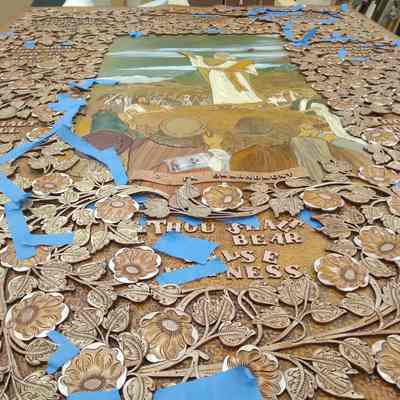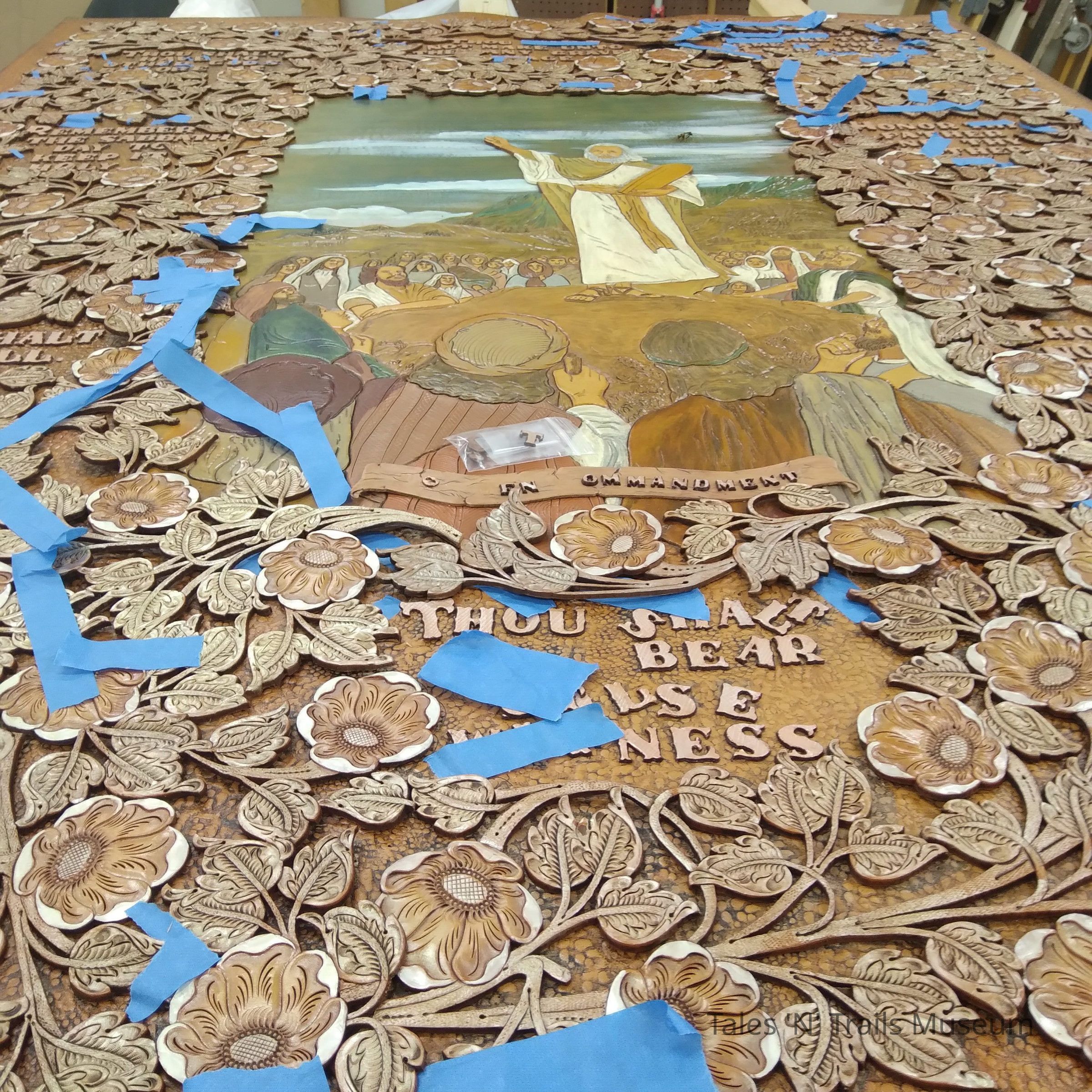 Restoration in progress on "Ten Commandments" by Legacy Conservation