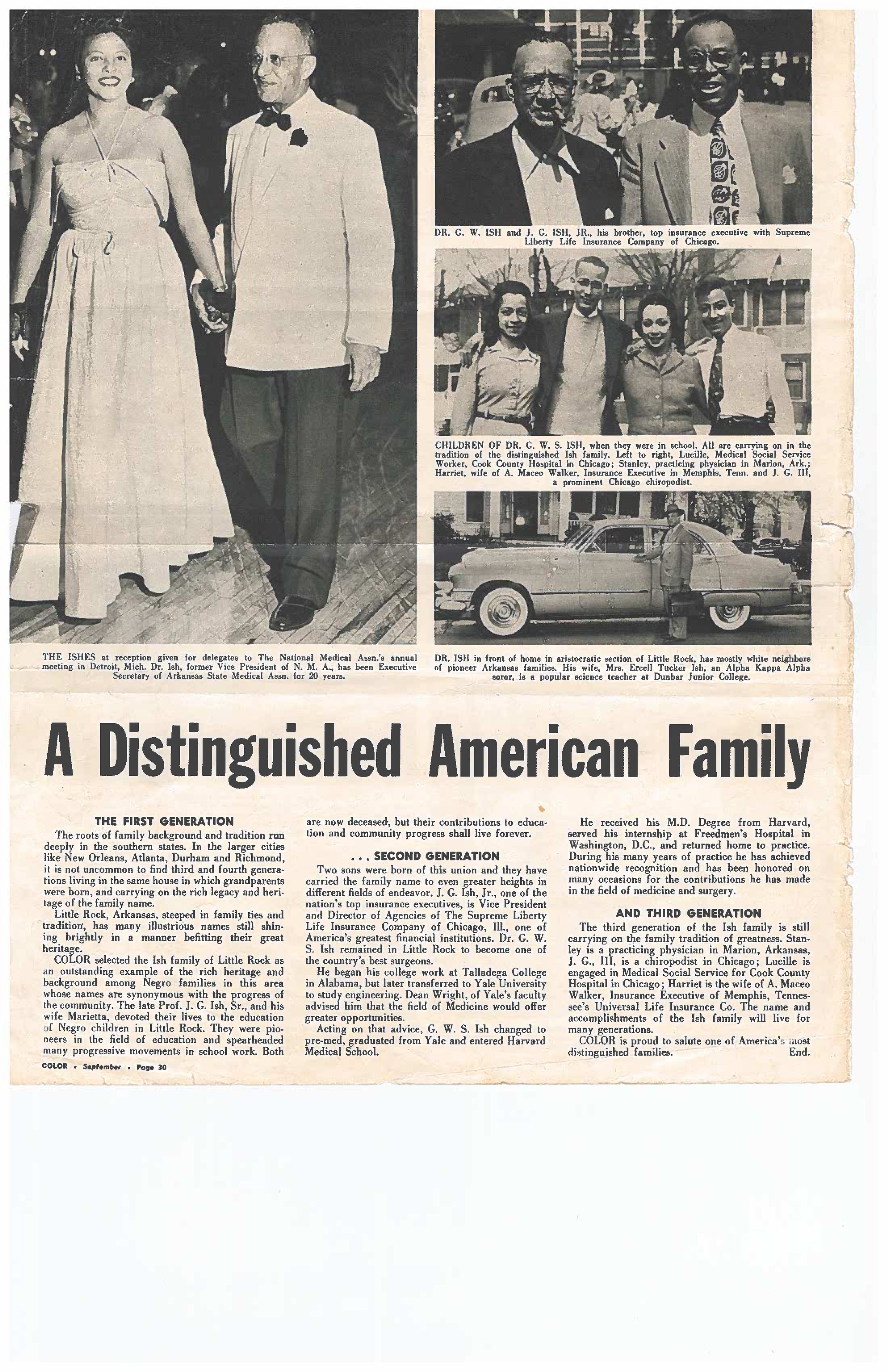 Article featuring the Ish Family- late 1940s