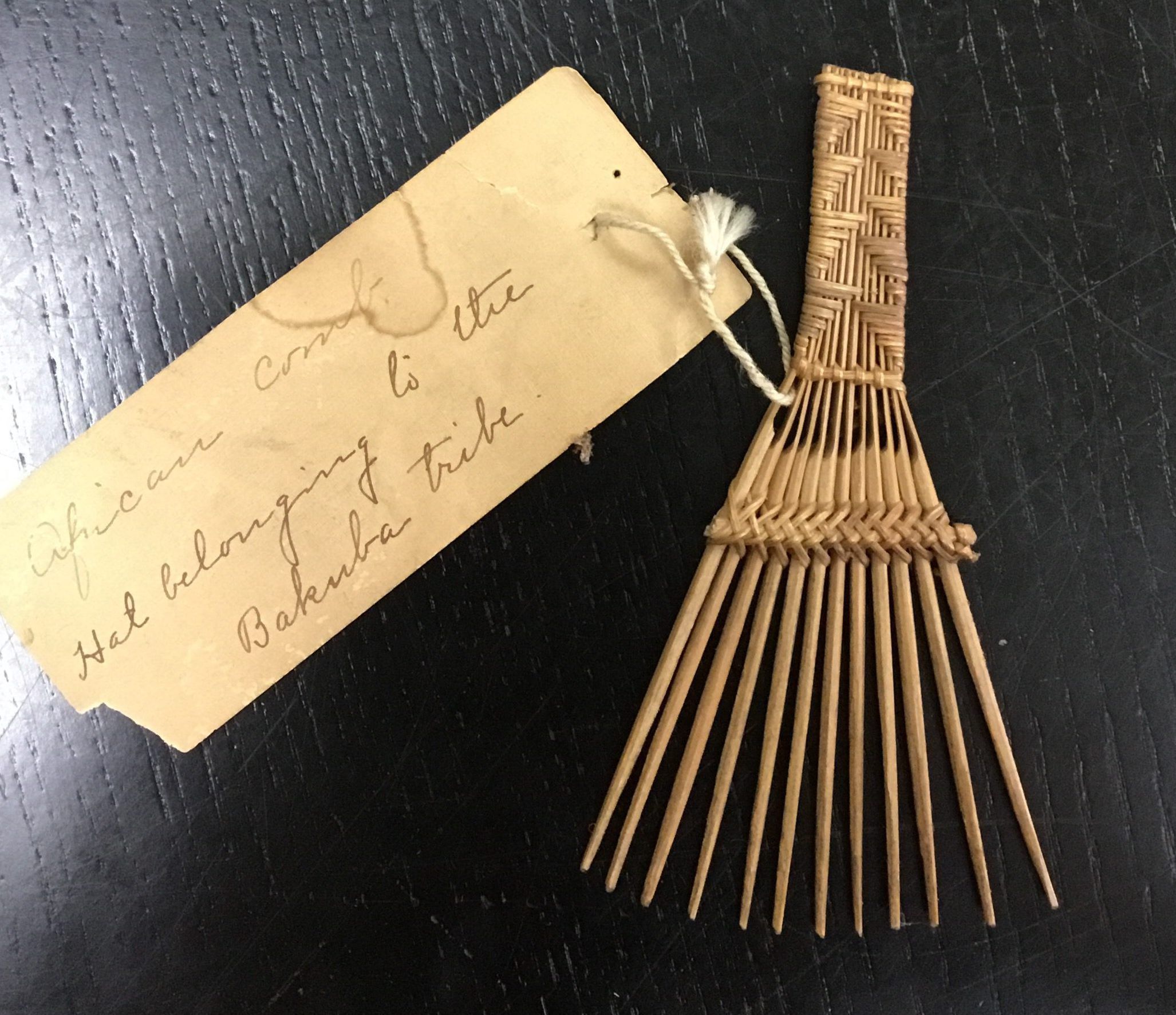 Original tag identifies object as “African Comb, Hat belonging to the Bakuba tribe”
