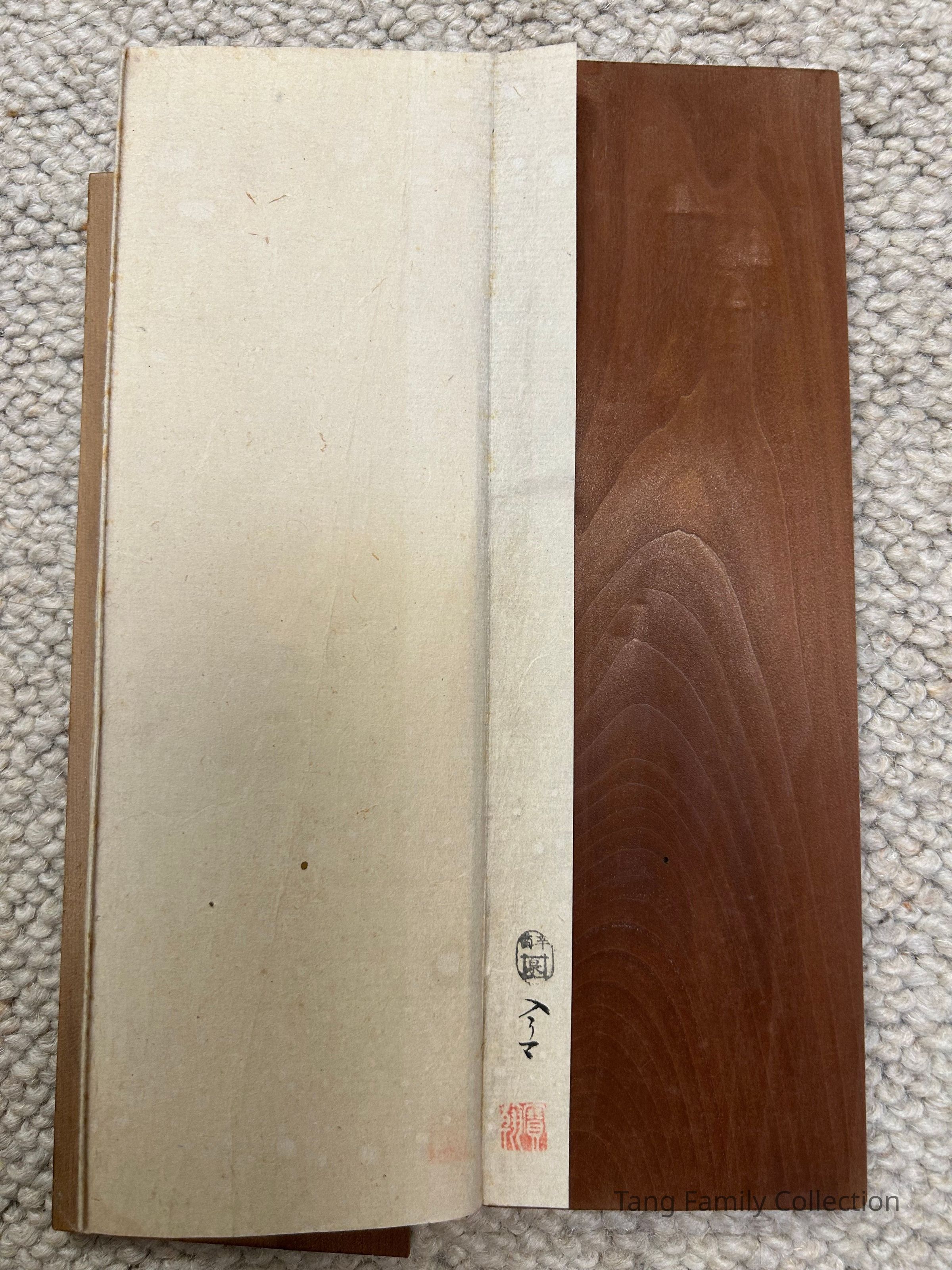 The text references Mount Katsuragi in Nara Prefecture, a site closely tied to early Japanese court poetry. Several stone monuments of this poem exist in the region—most prominently at Kakinomoto Shrine (Katsuragi City)—but the calligraphic style here differs from known outdoor monuments. The book therefore probably derives from a studio-produced commemorative inscription, following the same poetic tradition but independent of the larger public stones.