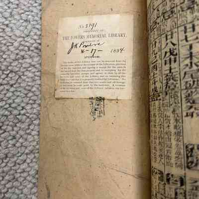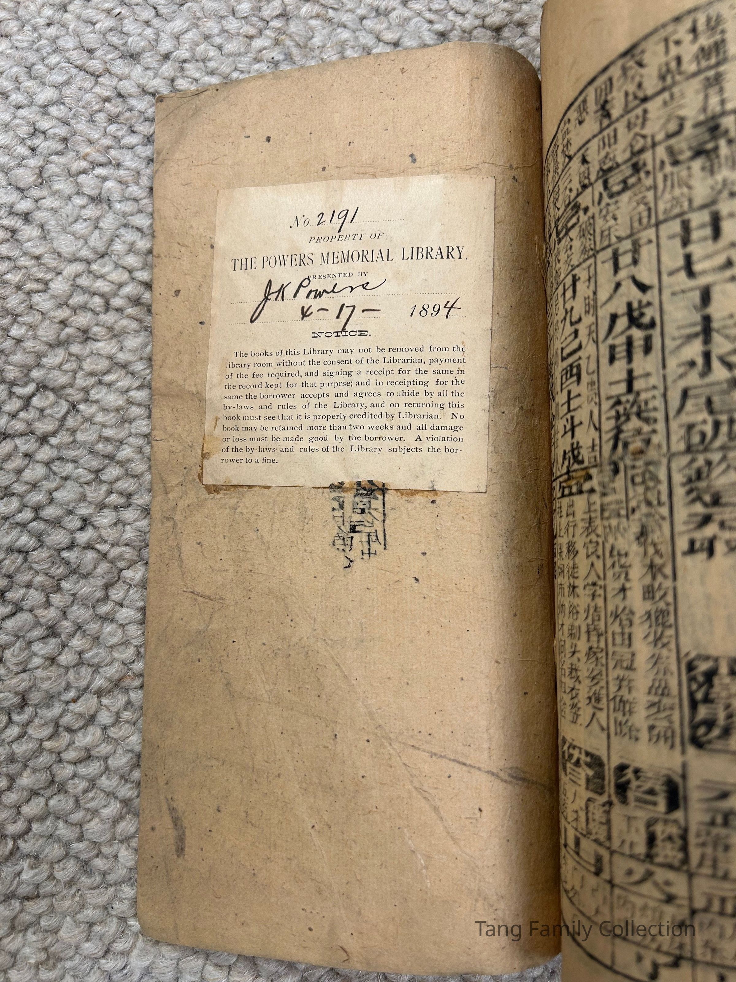 The book was cataloged in 1894 as part of the "Powers Memorial Library" under the inventory number 2191.