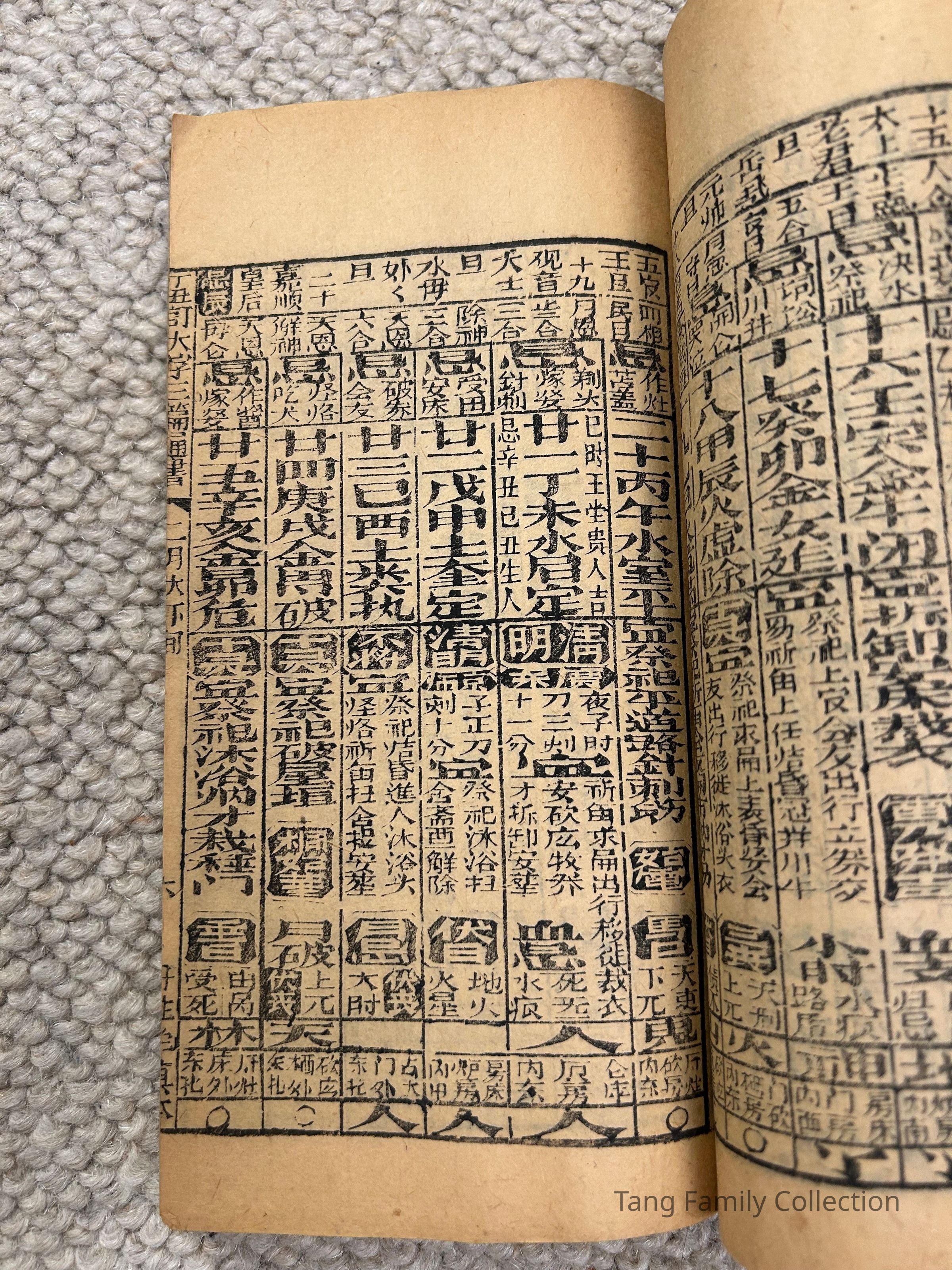 Such almanacs served as important guides for daily life in imperial China, containing auspicious days, astrological predictions, and other traditional instructions for activities such as marriage, travel, or farming.