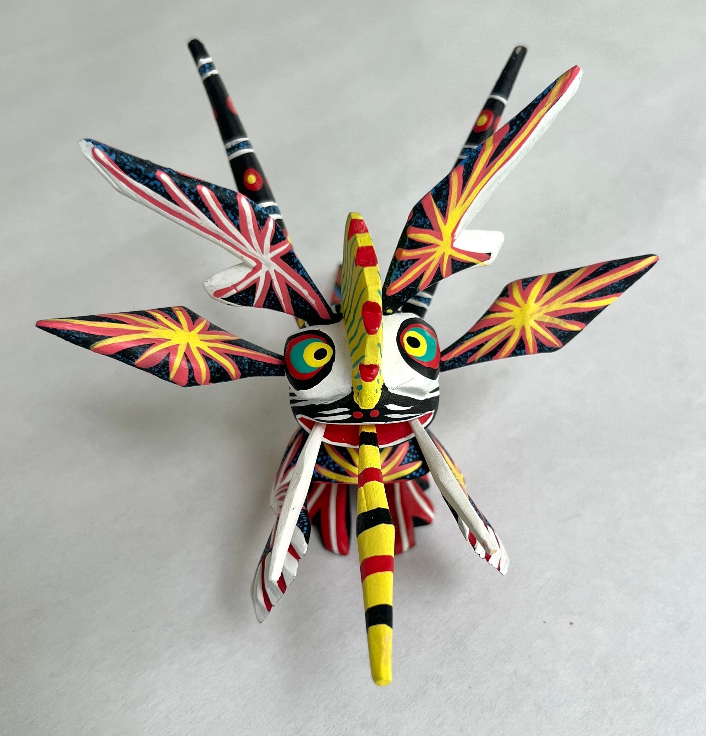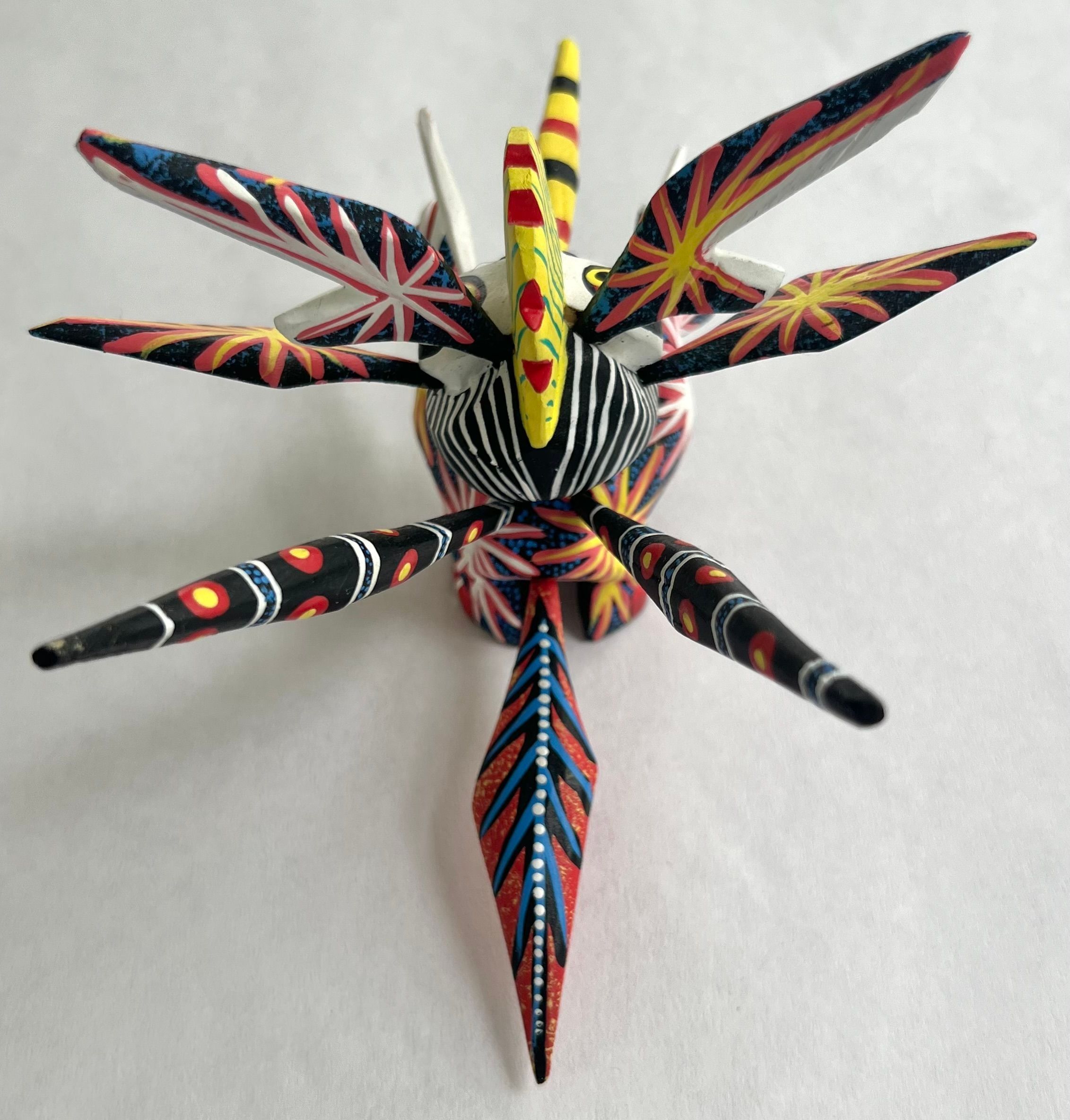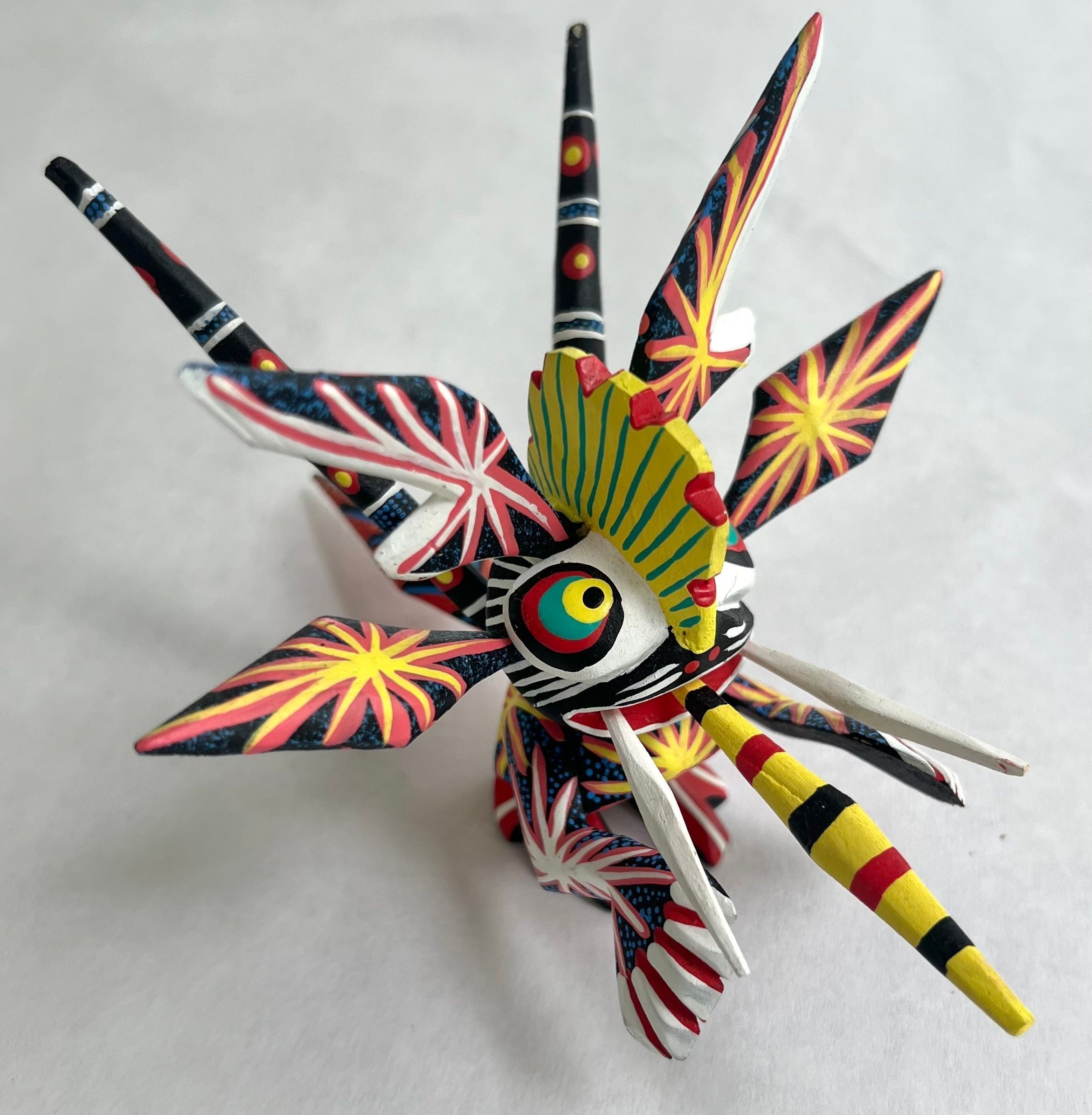 Oaxacan carving of a mythical creature polychromed with bright intense colors.Collection