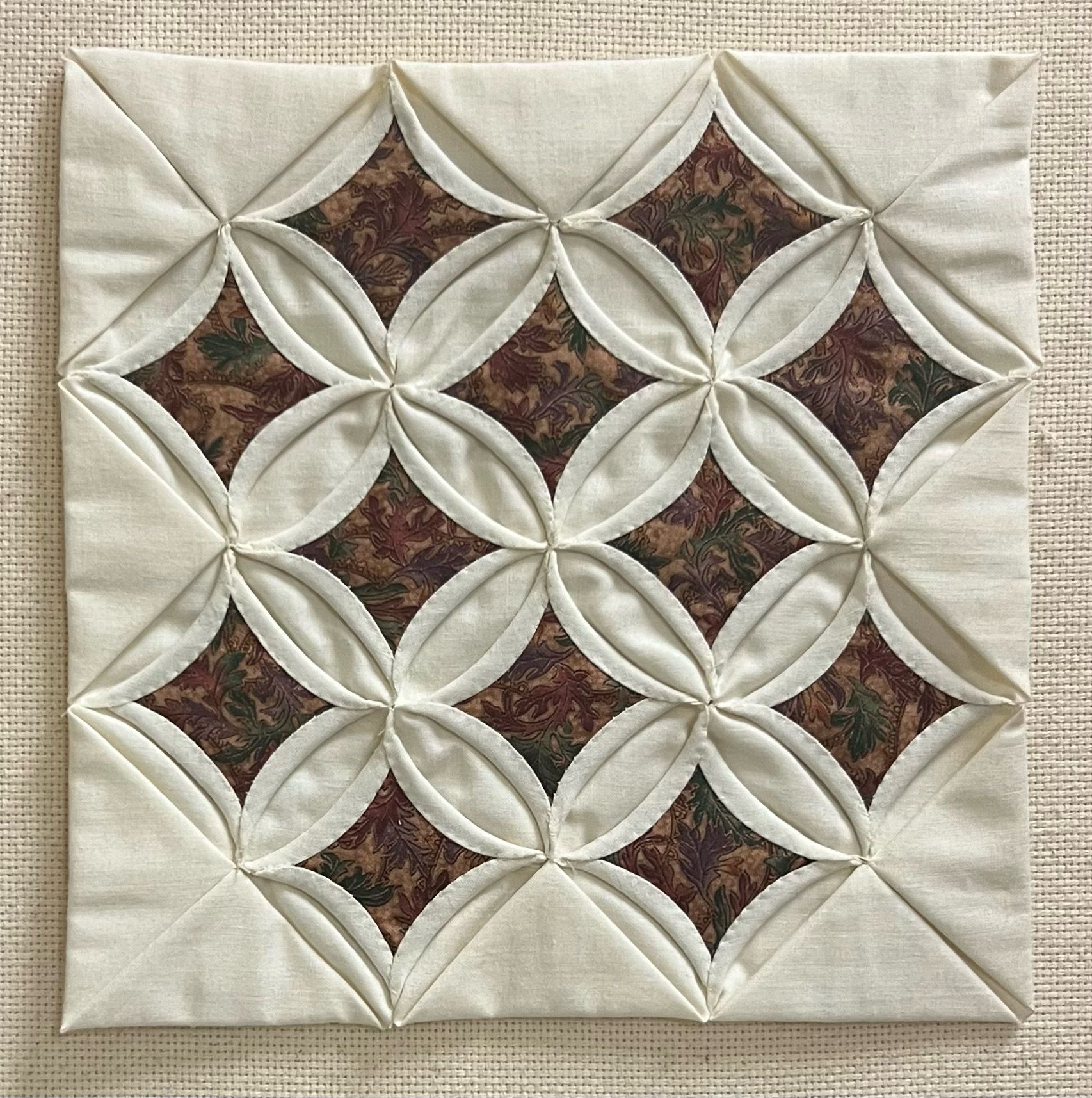 Diamond quilted pieces fitted into round quilted openingsCollection