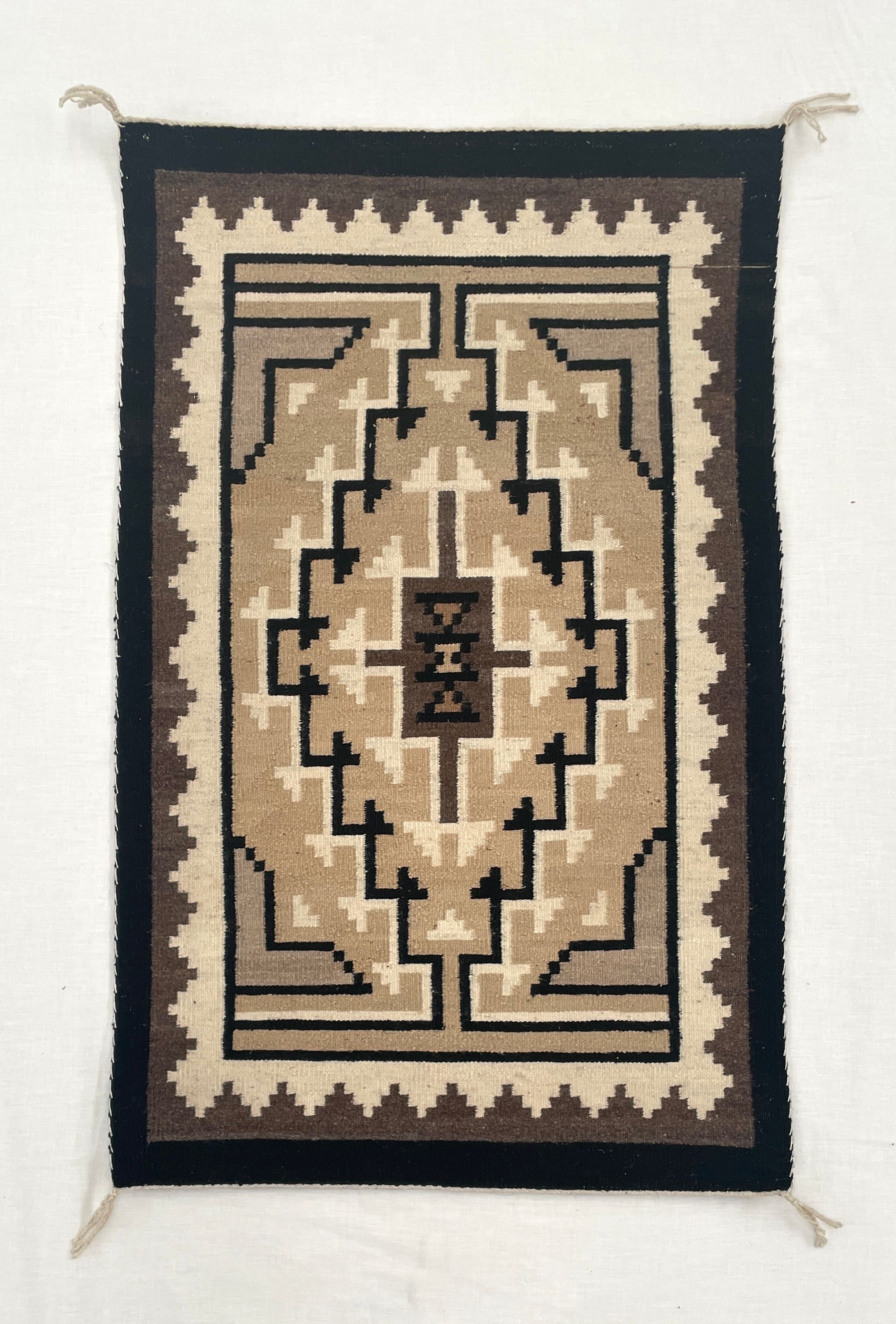 Cream tan grey black; blanket stitched edges.Collection