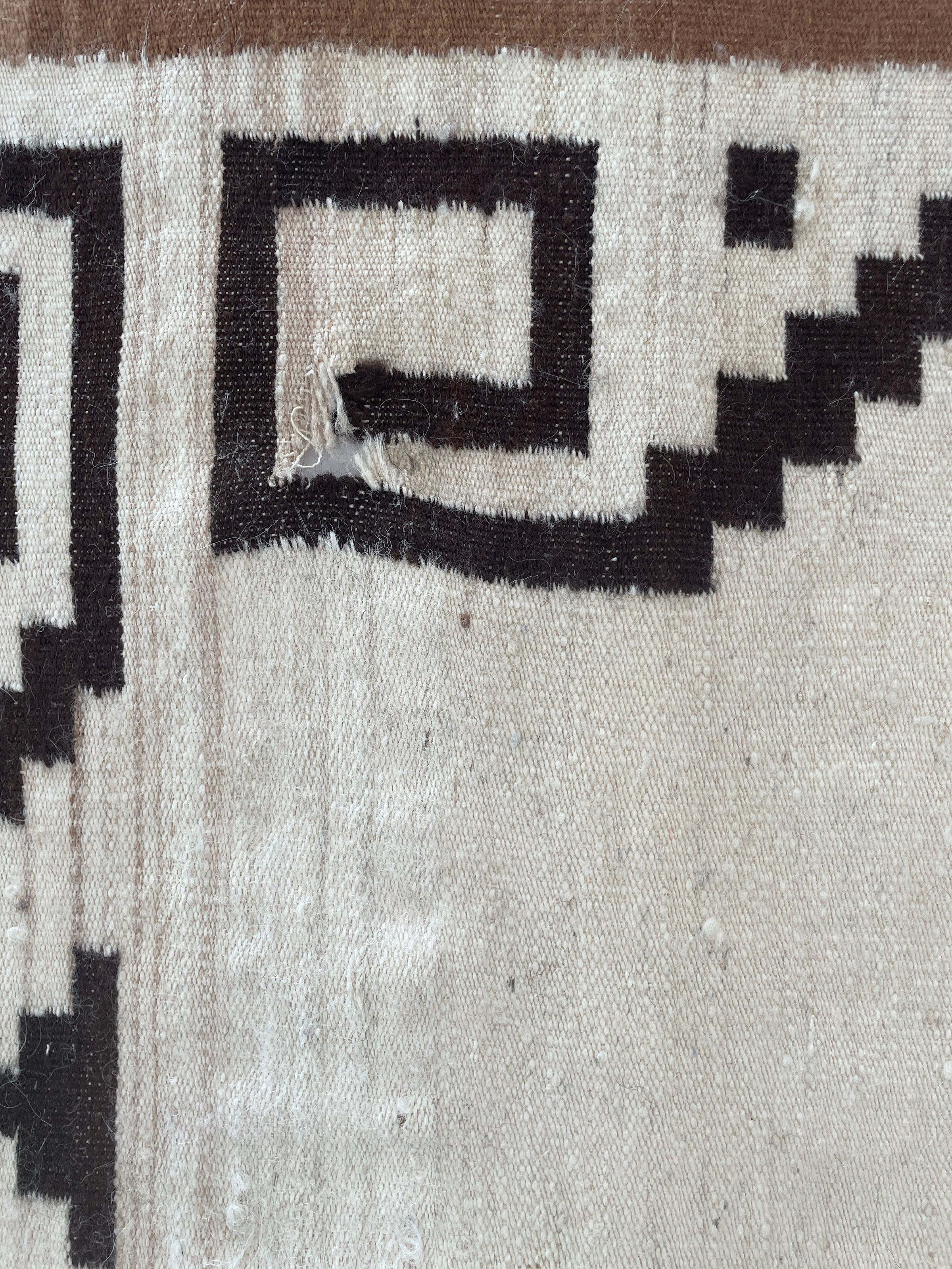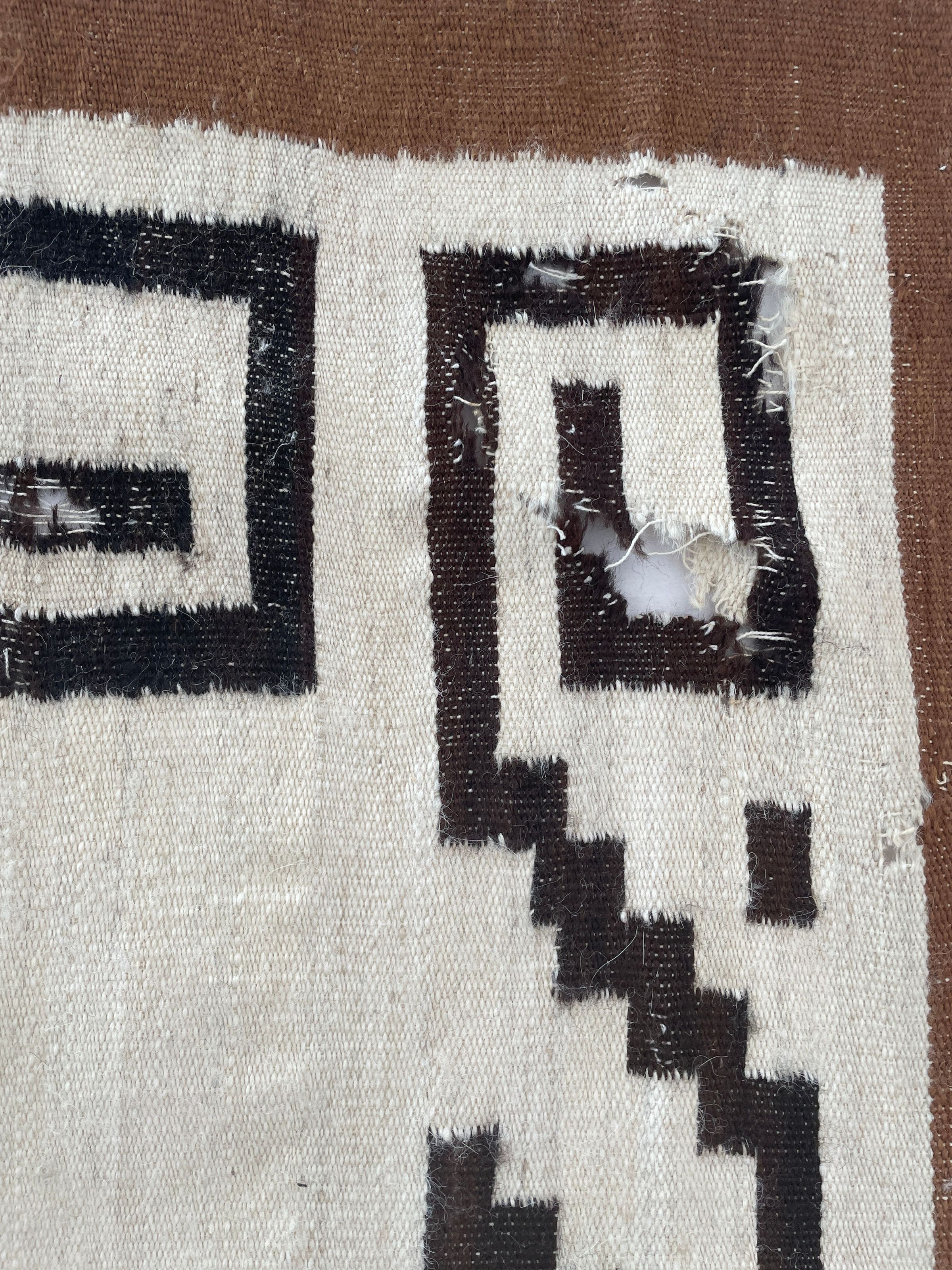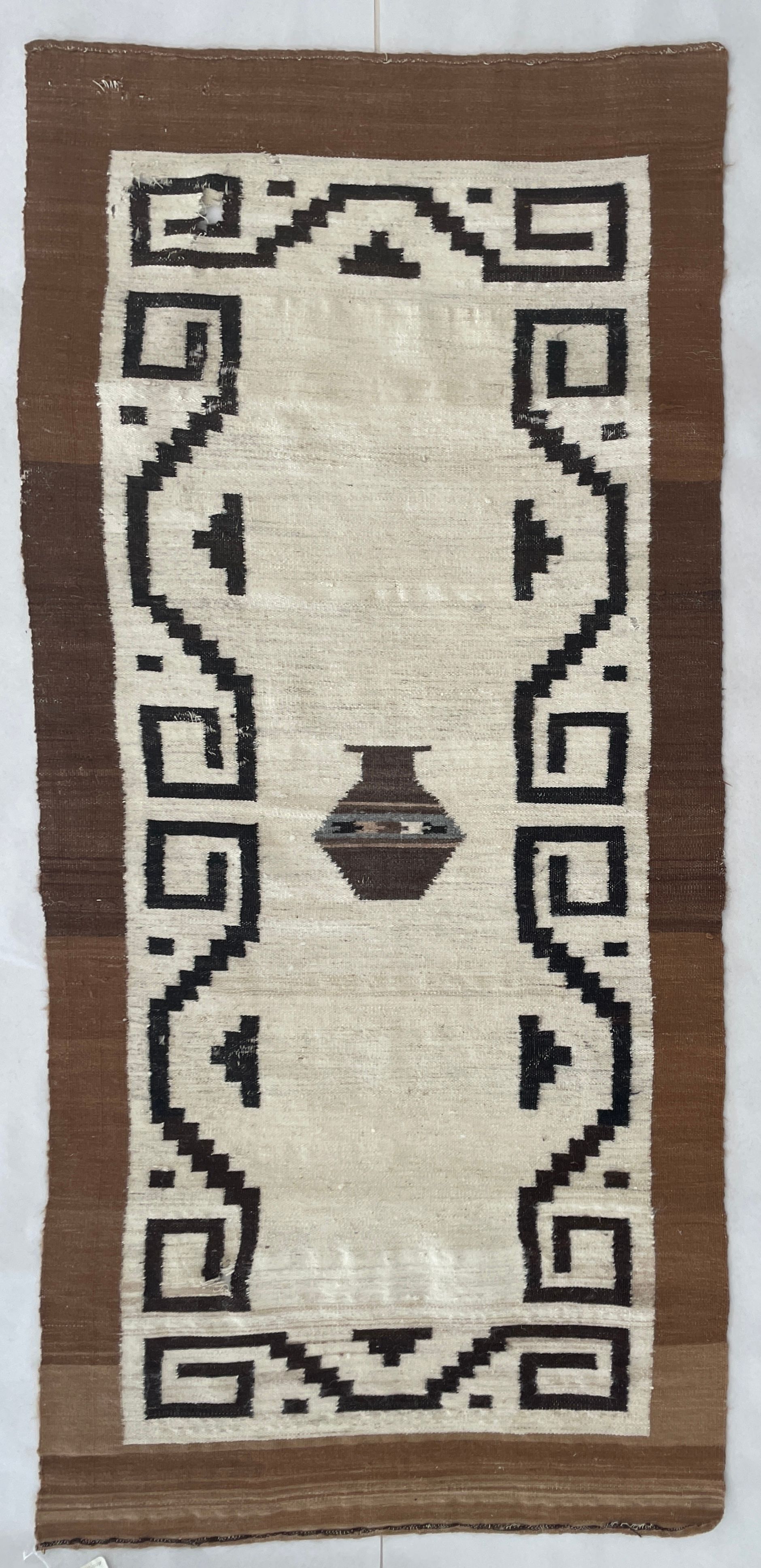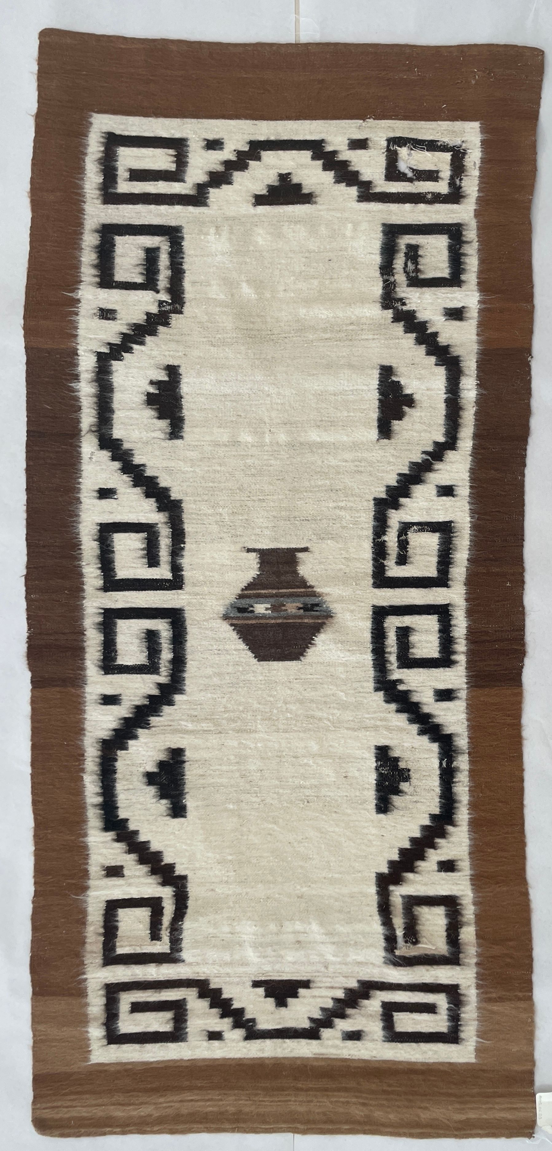 Cream background with black geometric designs. Brown Border pot design in center.Collection
