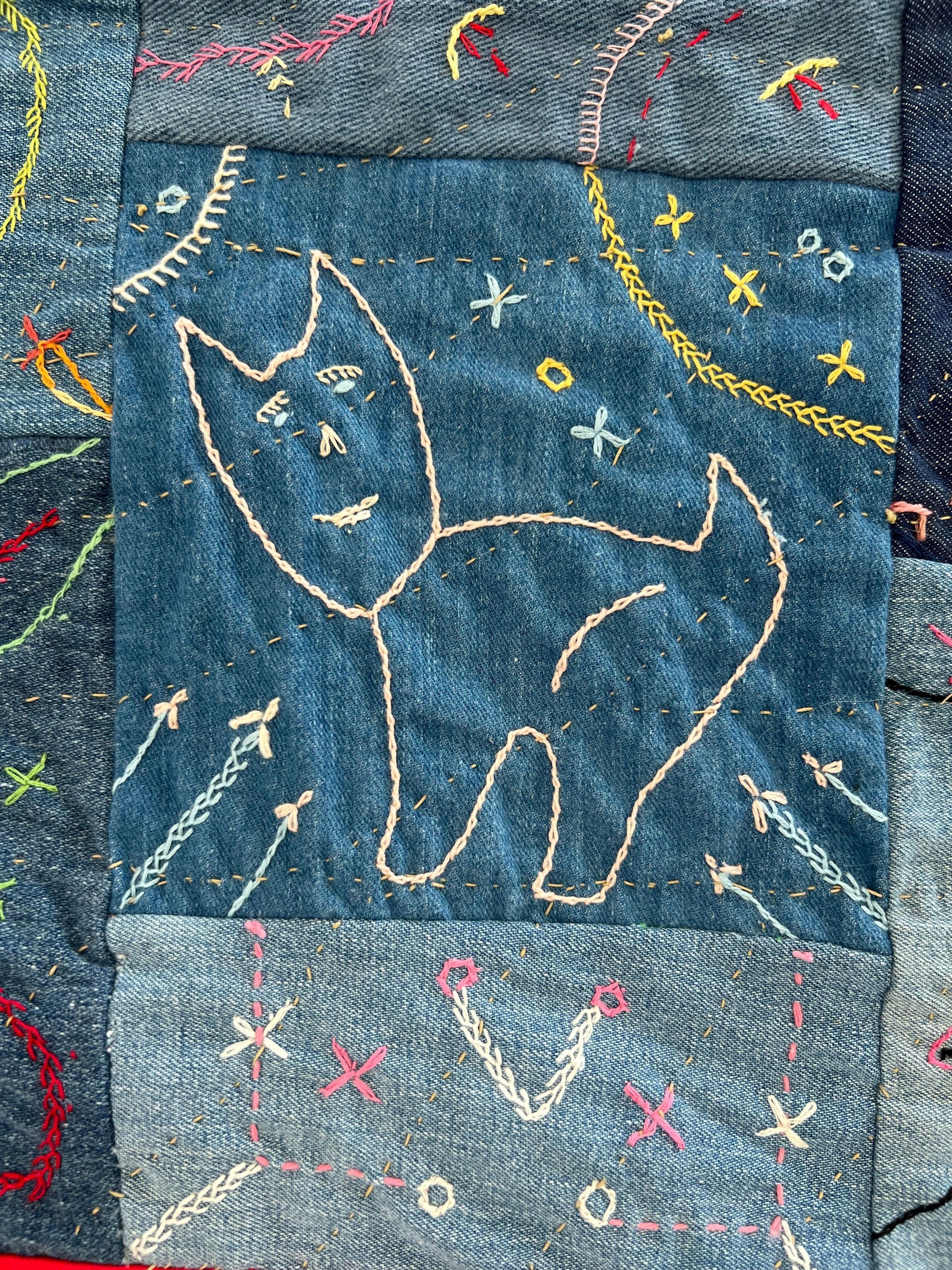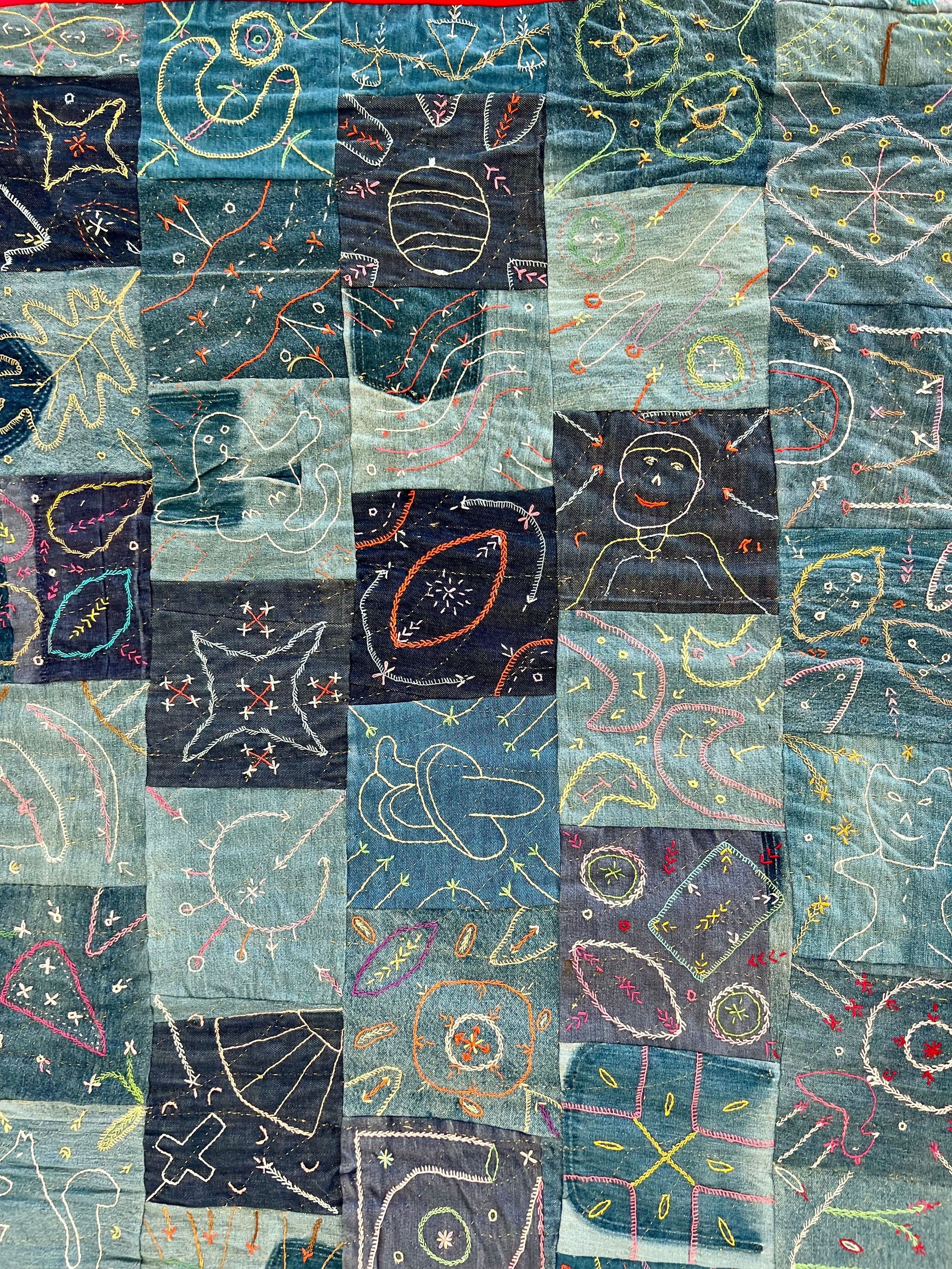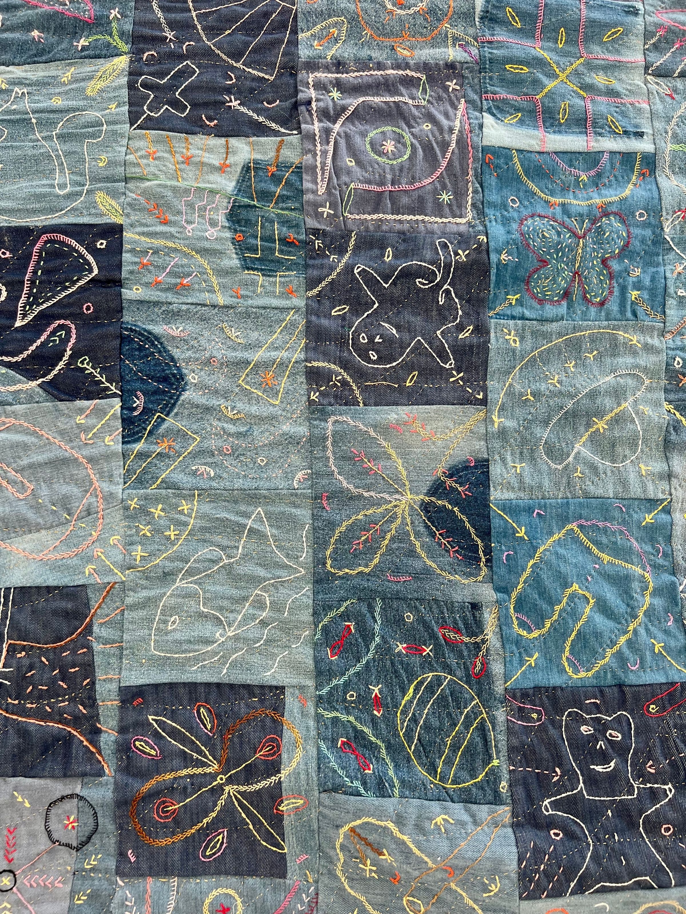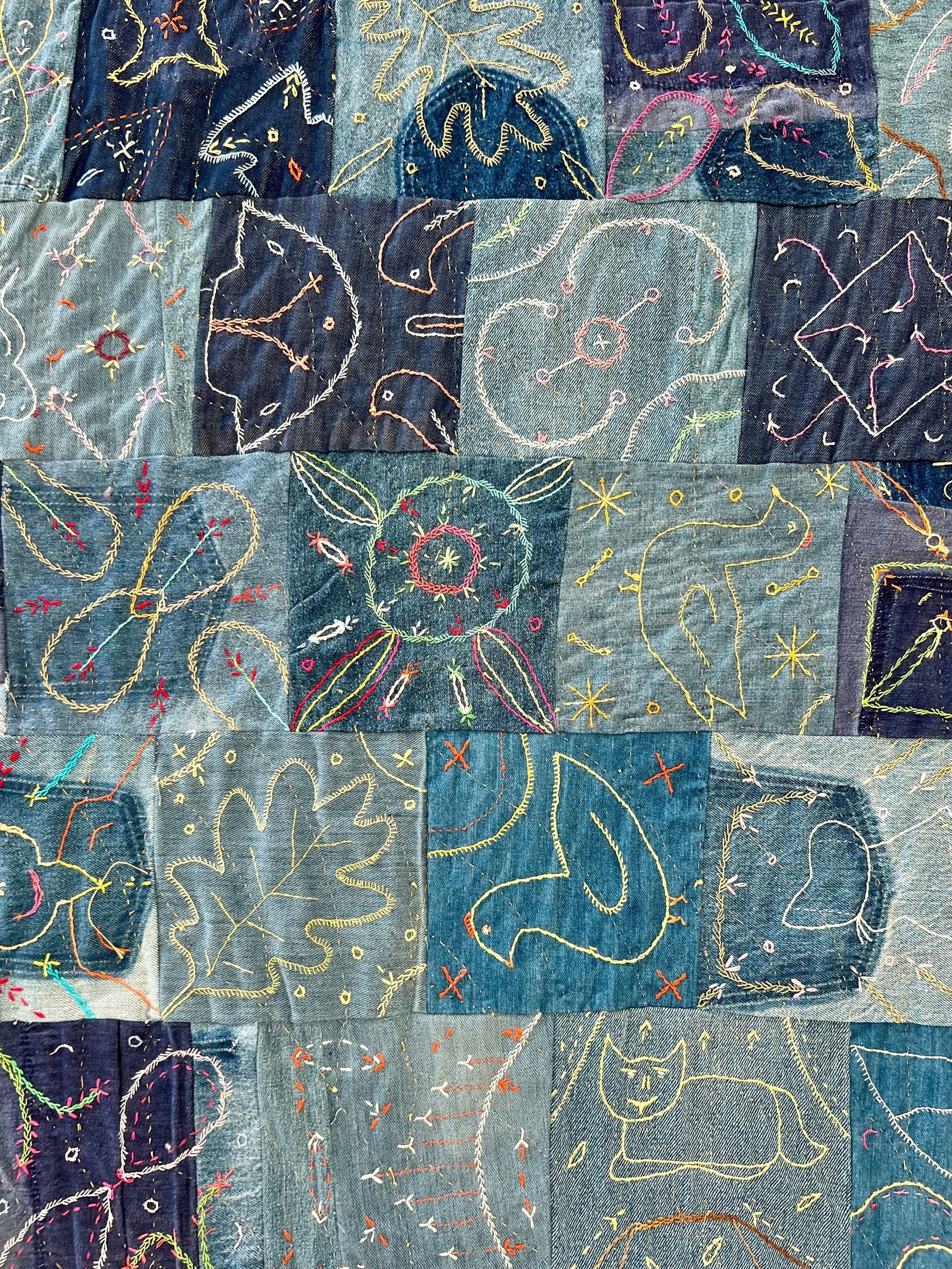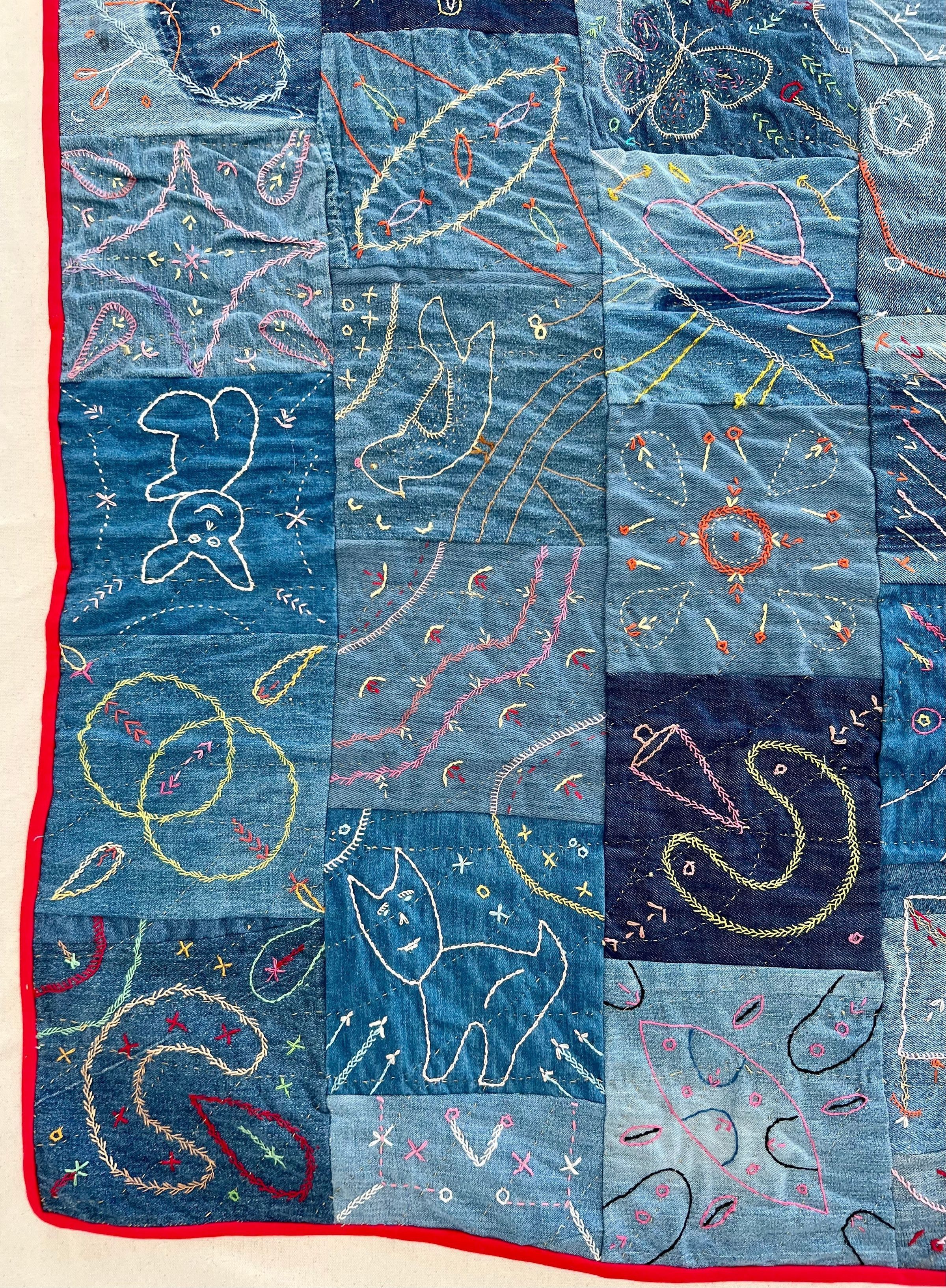 EMBROIDERED DENIM QUILT (SIGNED "100 AGE")Entry/Object ID