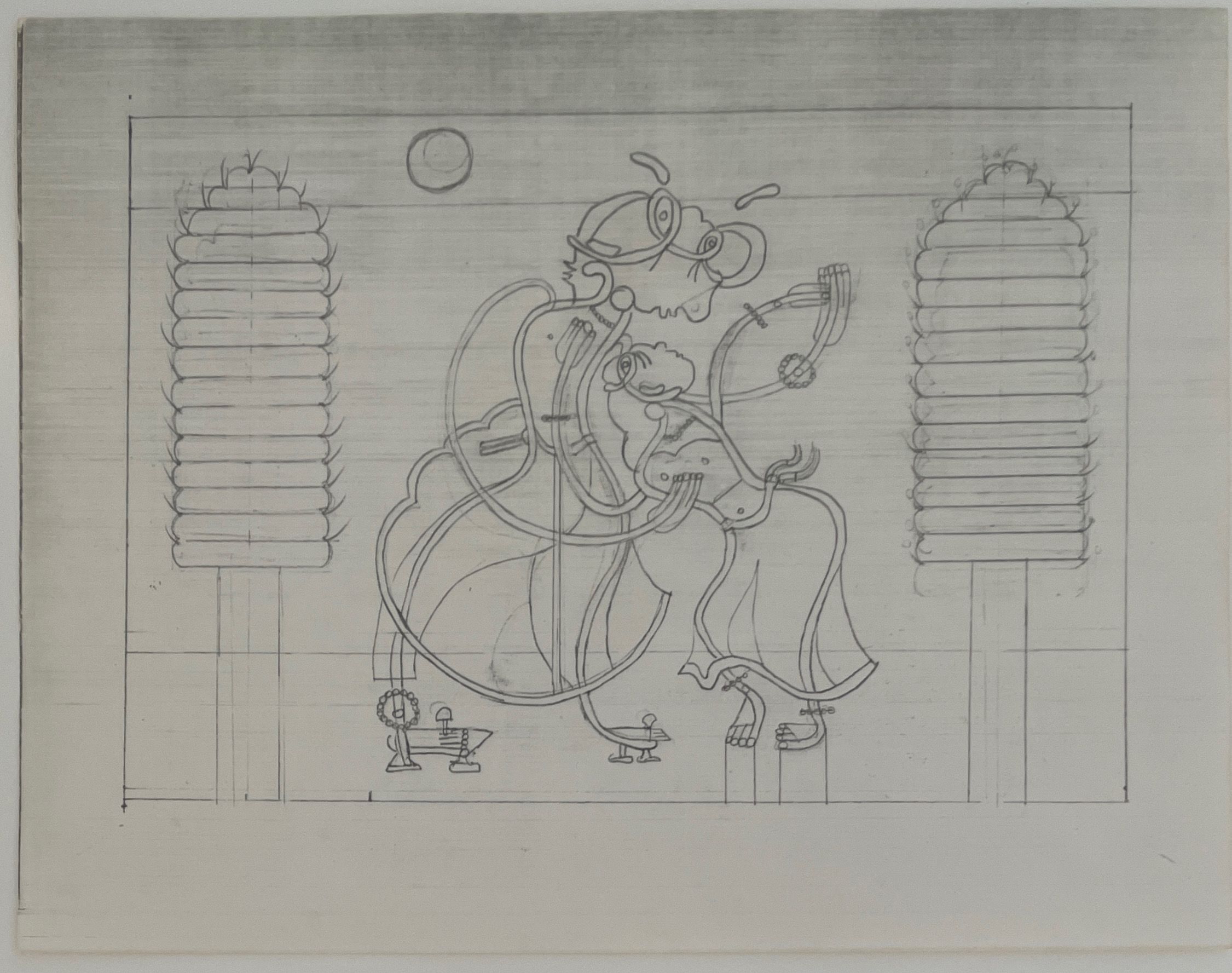 black and white photocopy of study for Moon Meet May. Printer gradient from top.